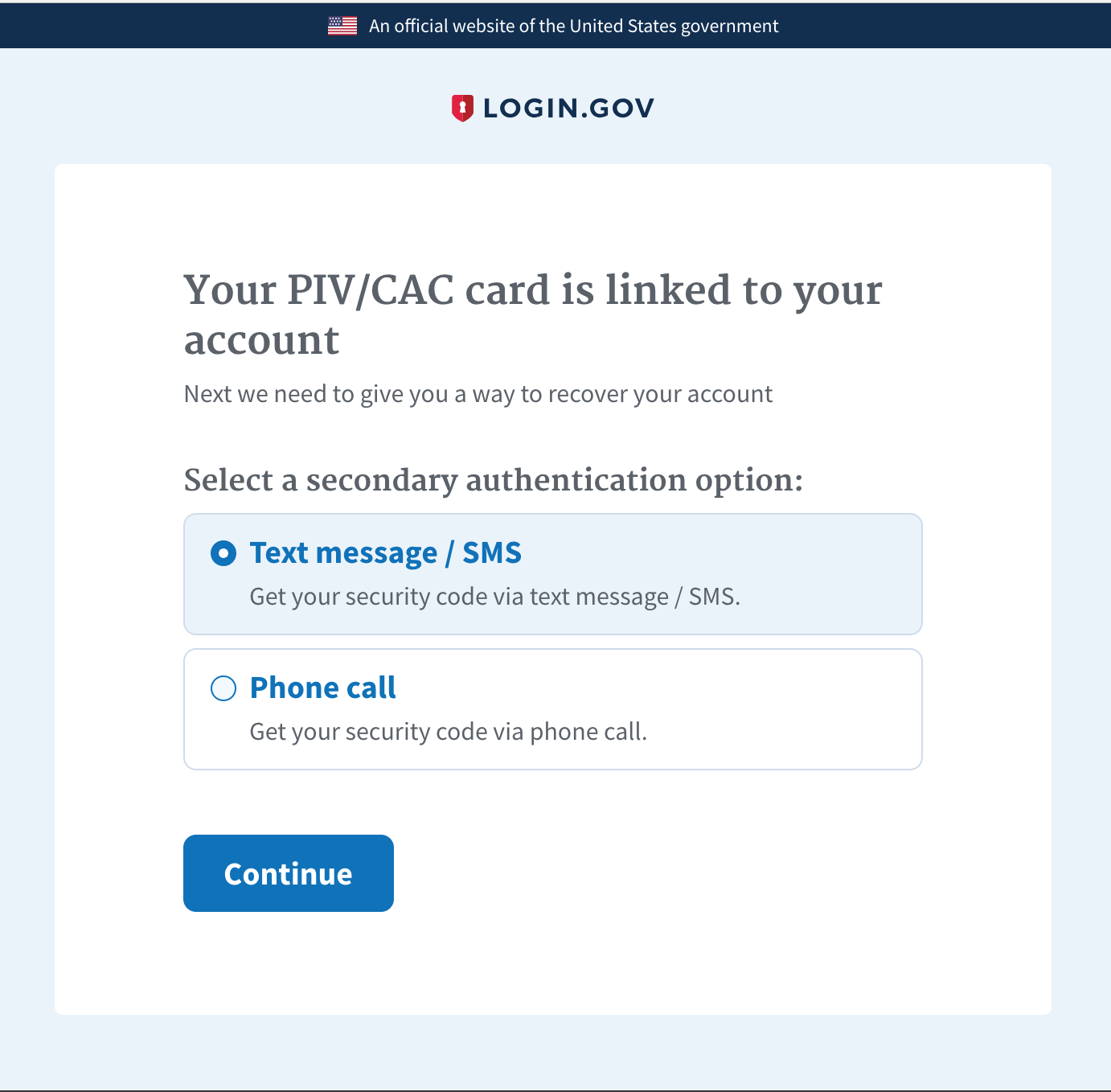 **Why**: PIV/CAC users are required to configure a backup phone number so that they can sign in/recover their account if they no longer have access to their PIV/CAC card.