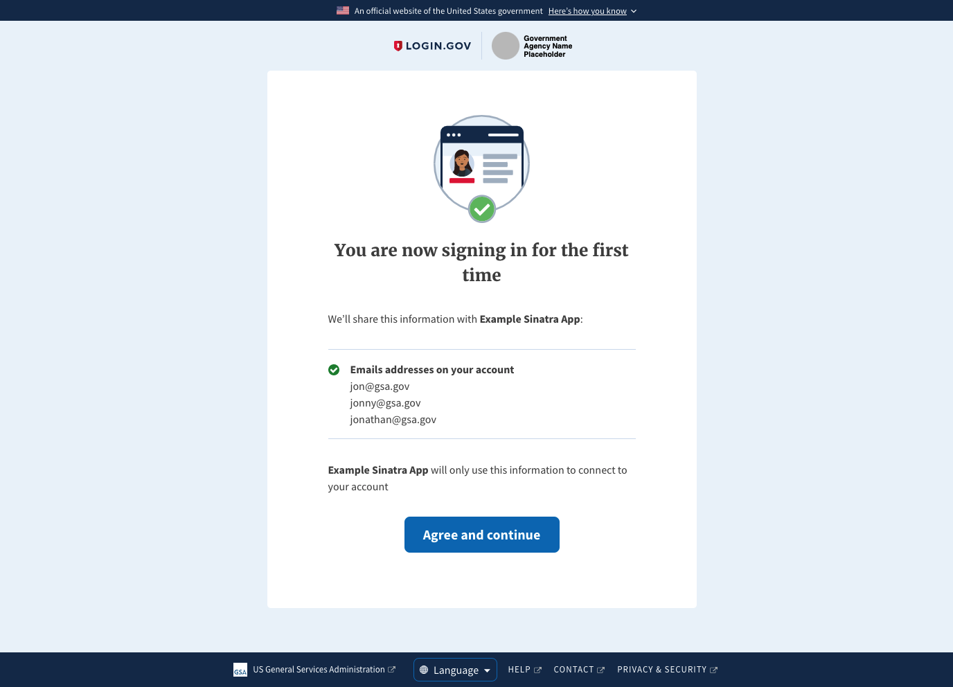 Okay, I've got some UI updates incorporating @anniehirshman-gsa's and @zachmargolis's feedback. Here is what it looks like if the SP requests just the sign in email. No changes here: Here is what it looks like if the SP requests all email addresses: Here is what it looks like if the SP requests all email addresses and there is only 1 email address: Finally, no need for an empty state since we changed the attribute to "all emails" instead of "all emails that aren't the sign in one". |