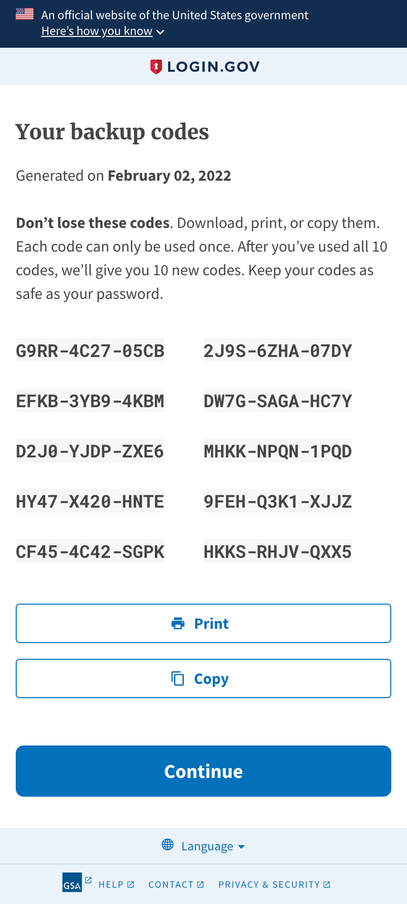 So this was an interesting predicament: The icon and accompanying text here are sensitive to whitespace. This isn't the case with the upstream proposal in uswds/uswds#4493, since it uses float. We can't use float here, because full-width buttons (a Login.gov-specific button feature) would cause the icon to appear at the far left of the button.