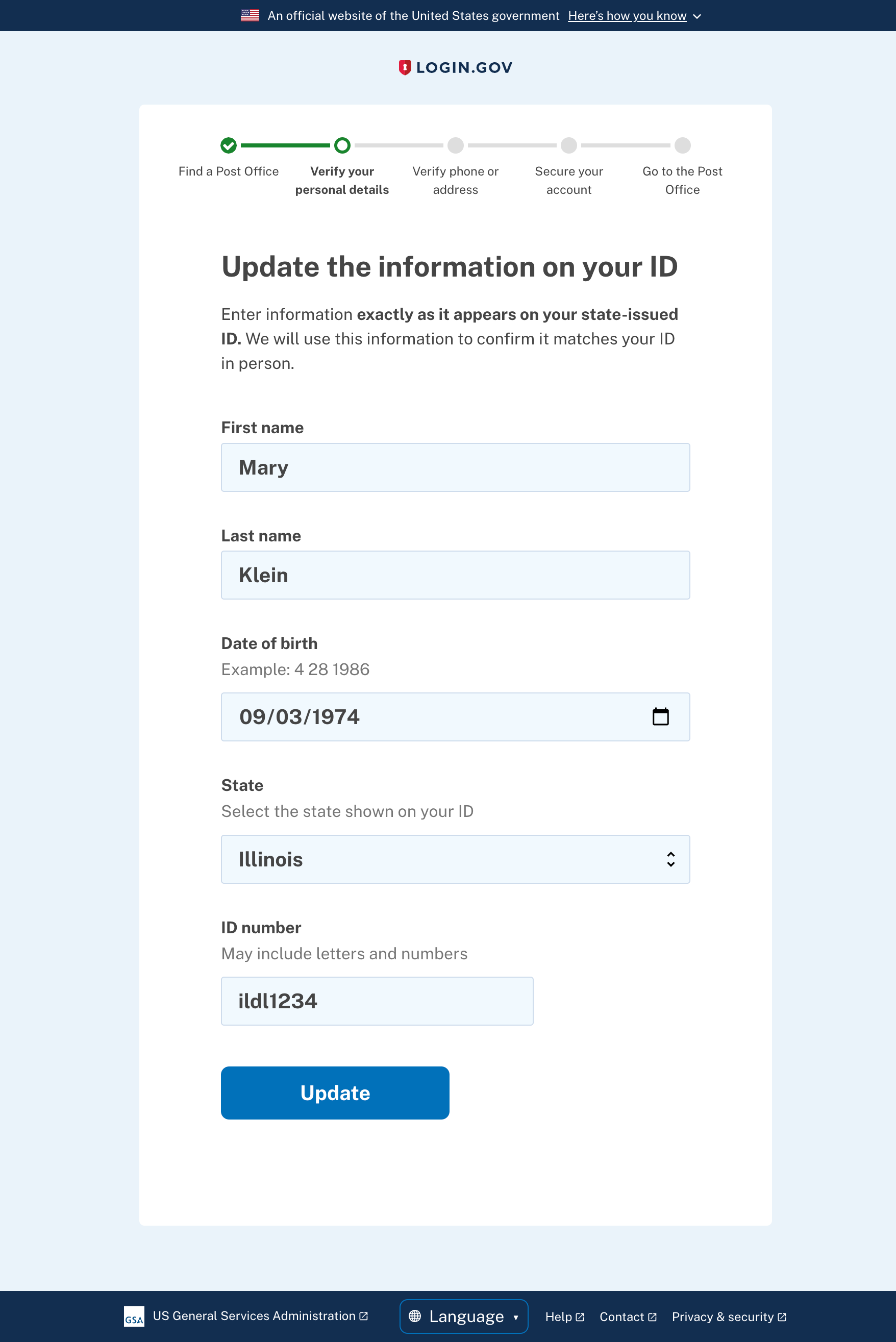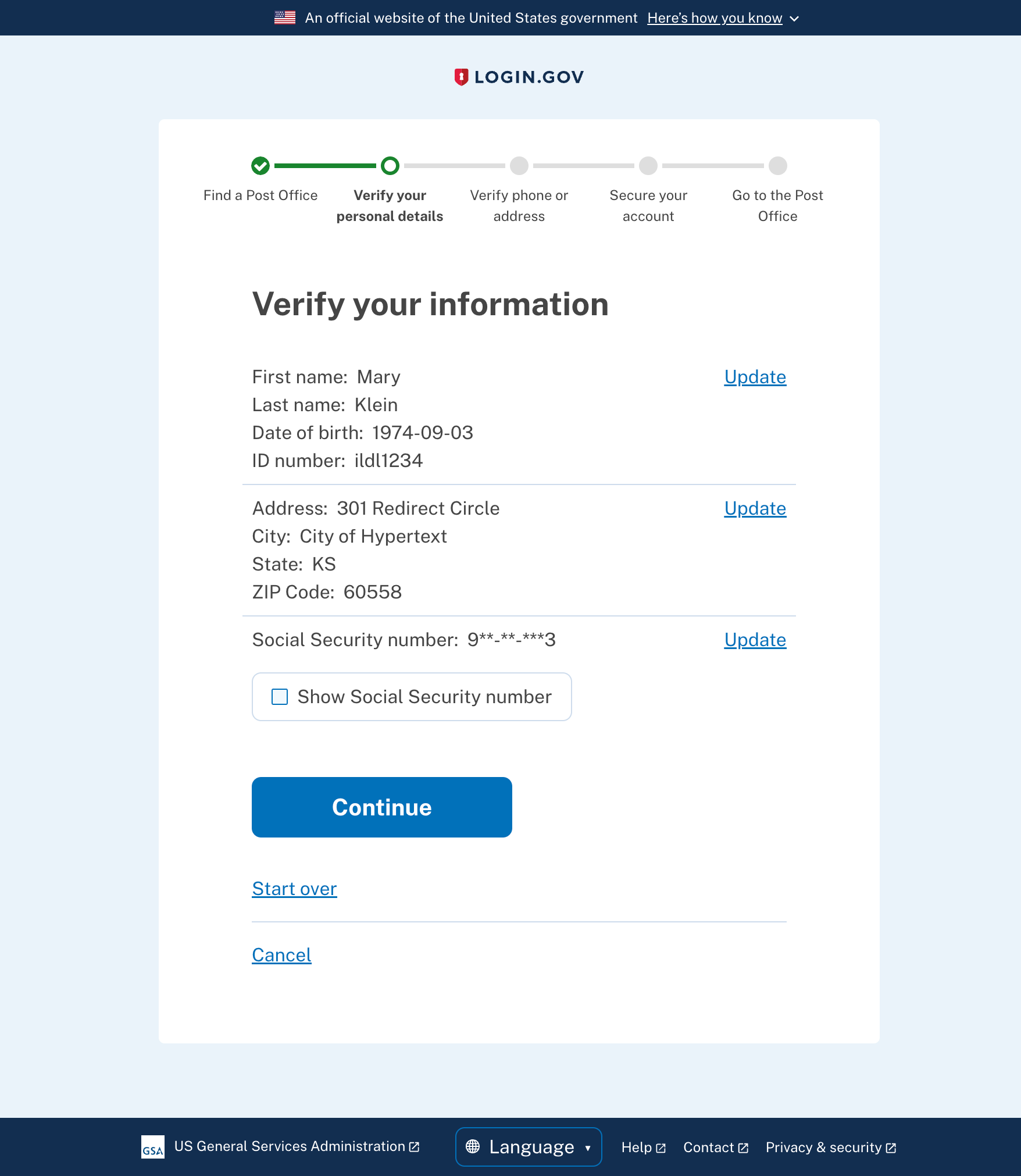 Verify page (in-person proofing)