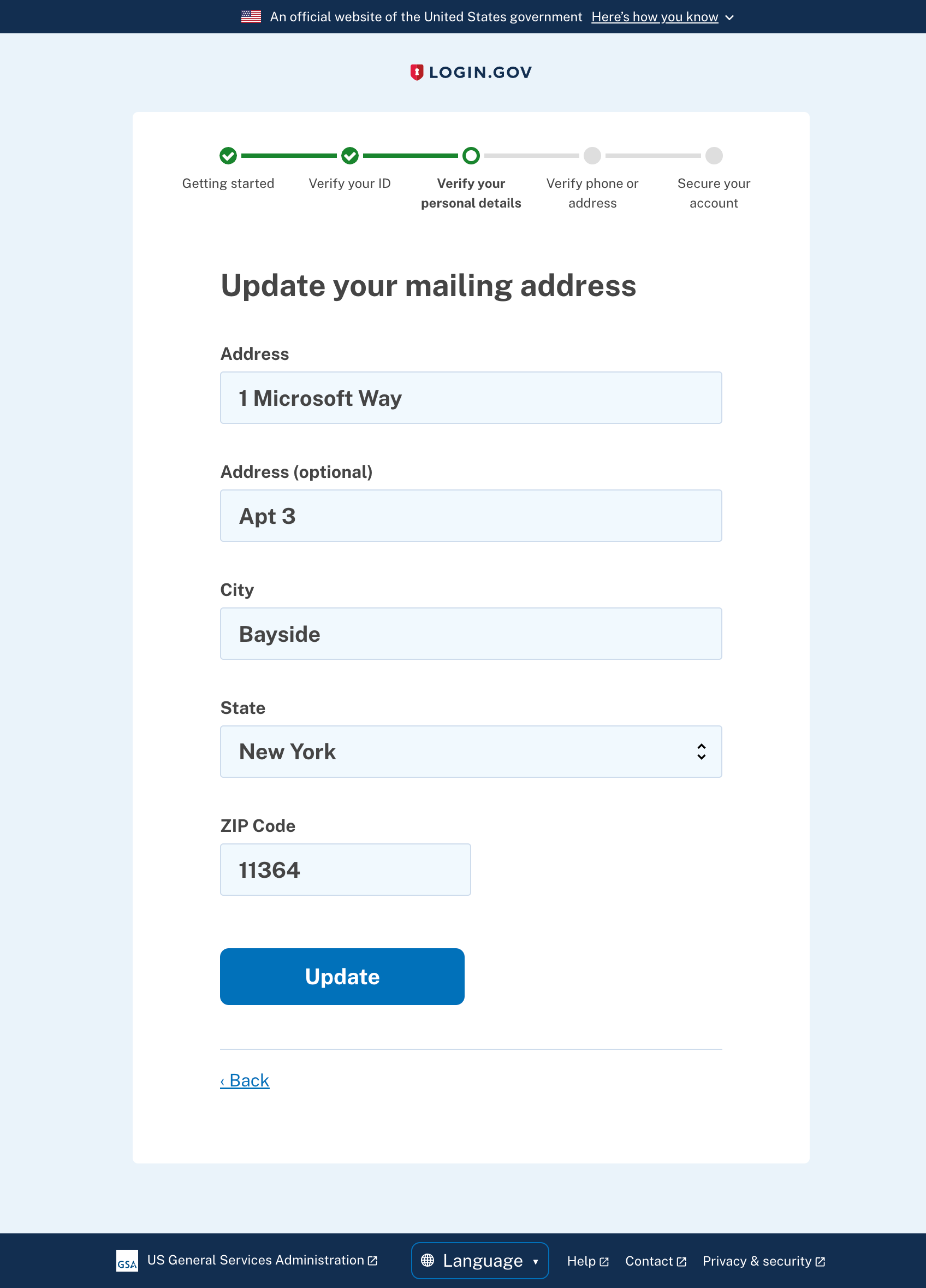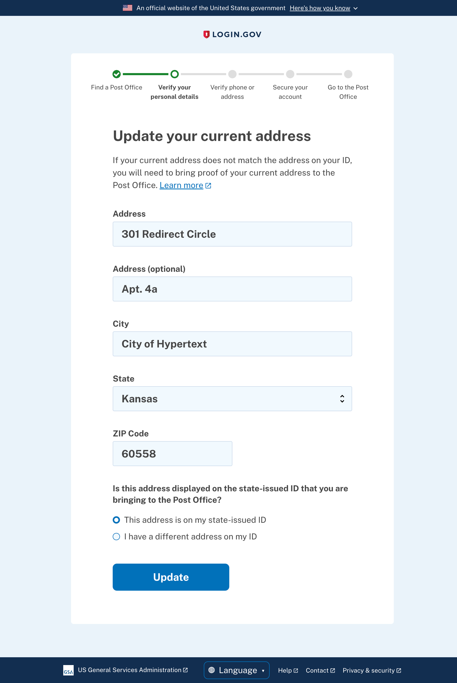 Change address page (in-person proofing)