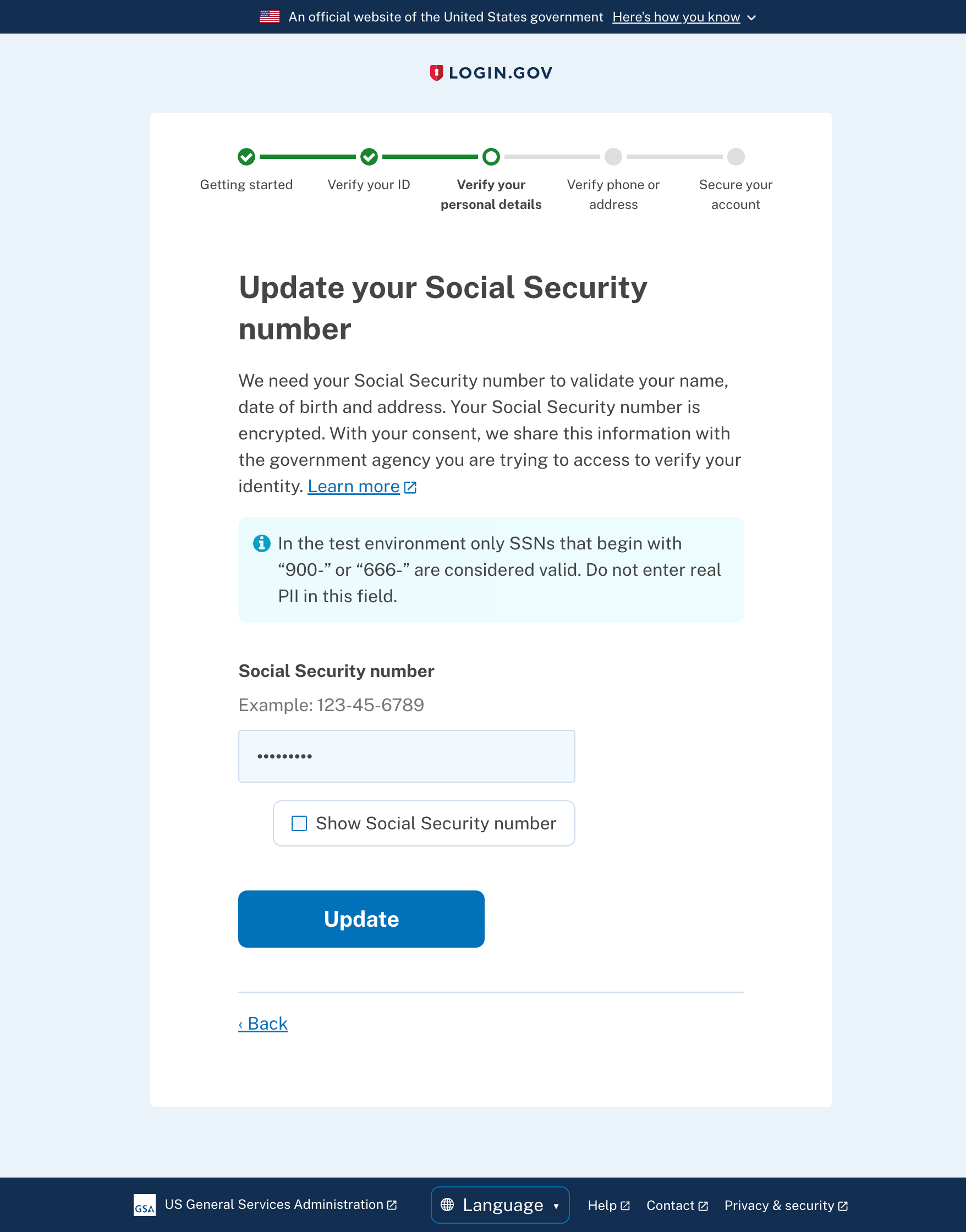 Change SSN page