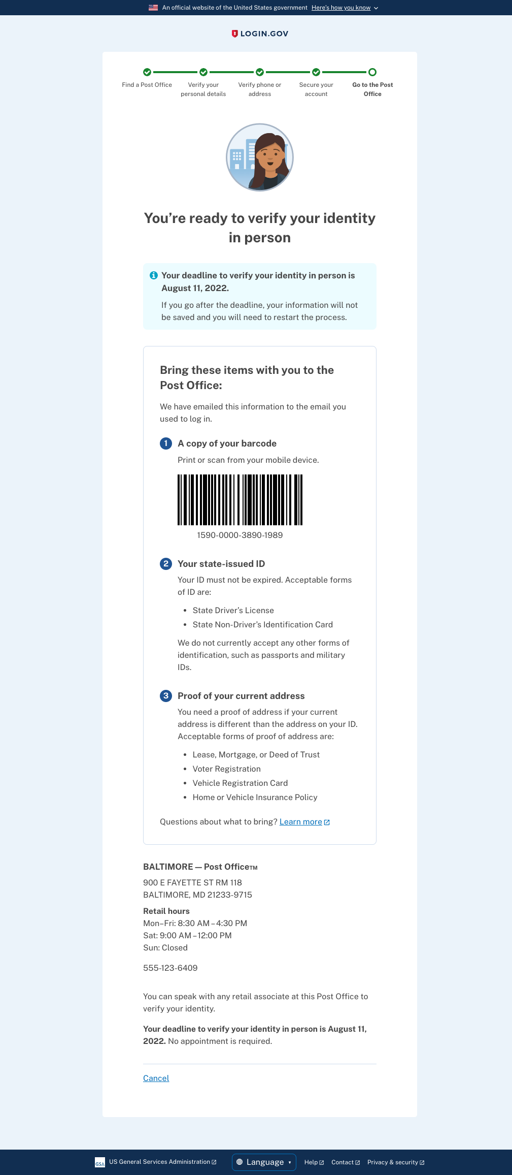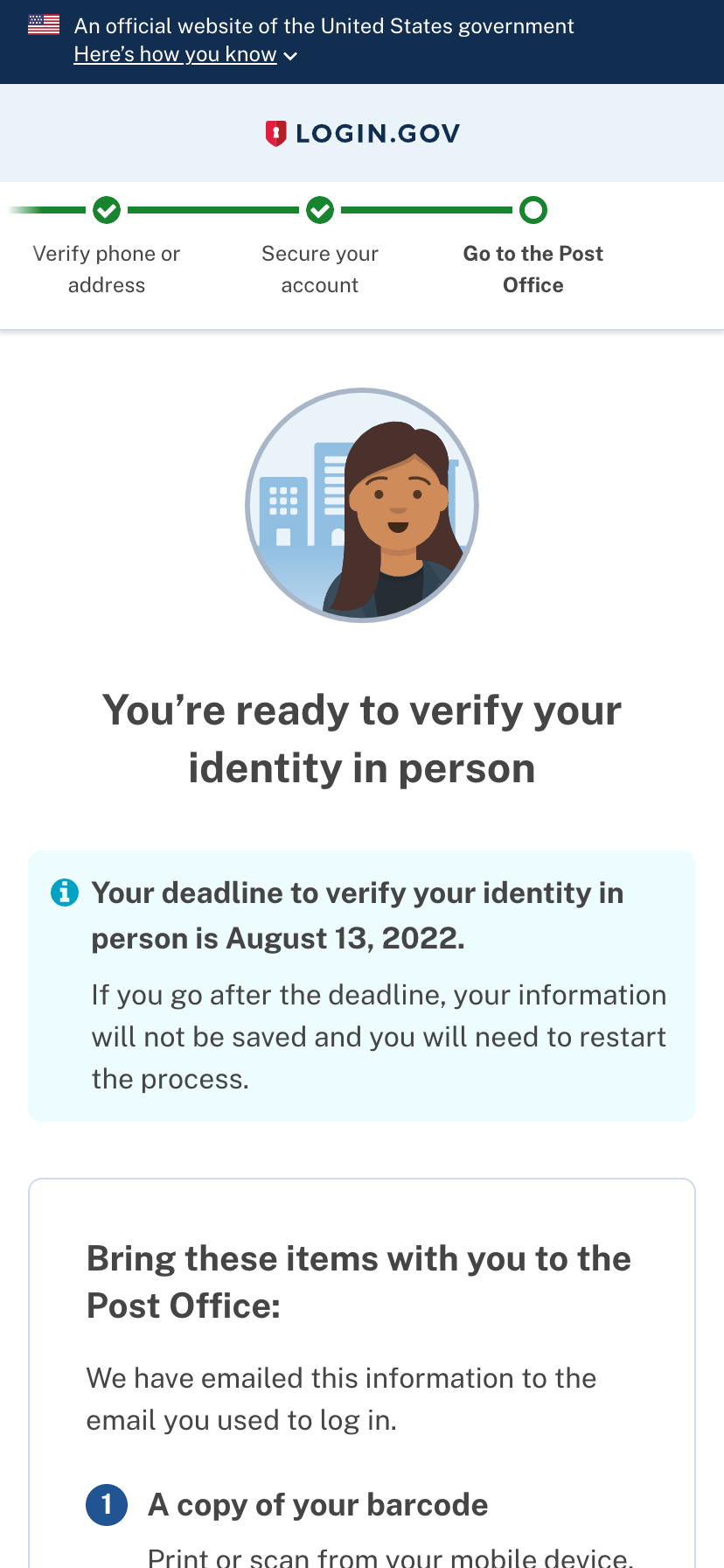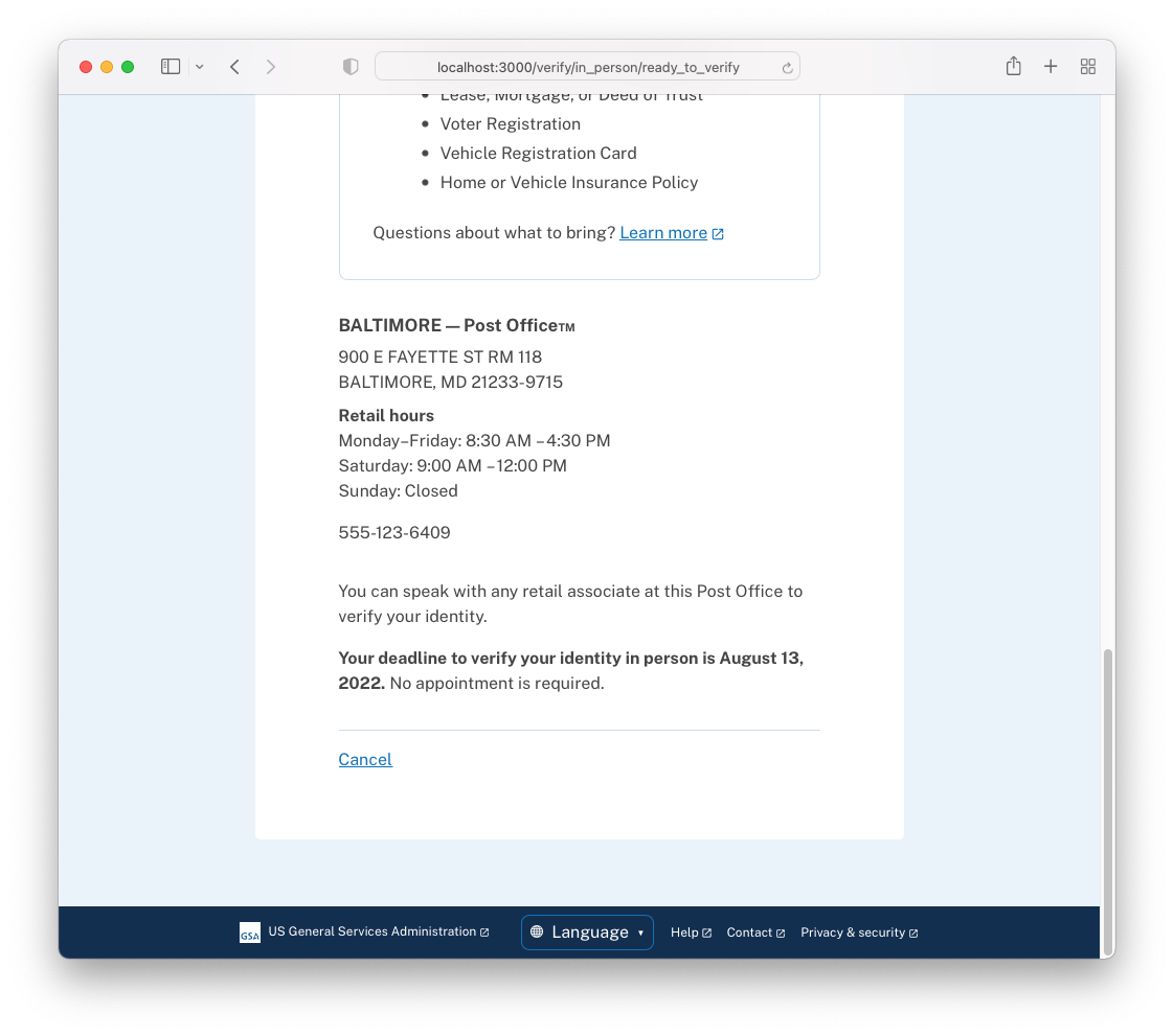 Why: So that a user has the instructions they need to proof their identity in person.
