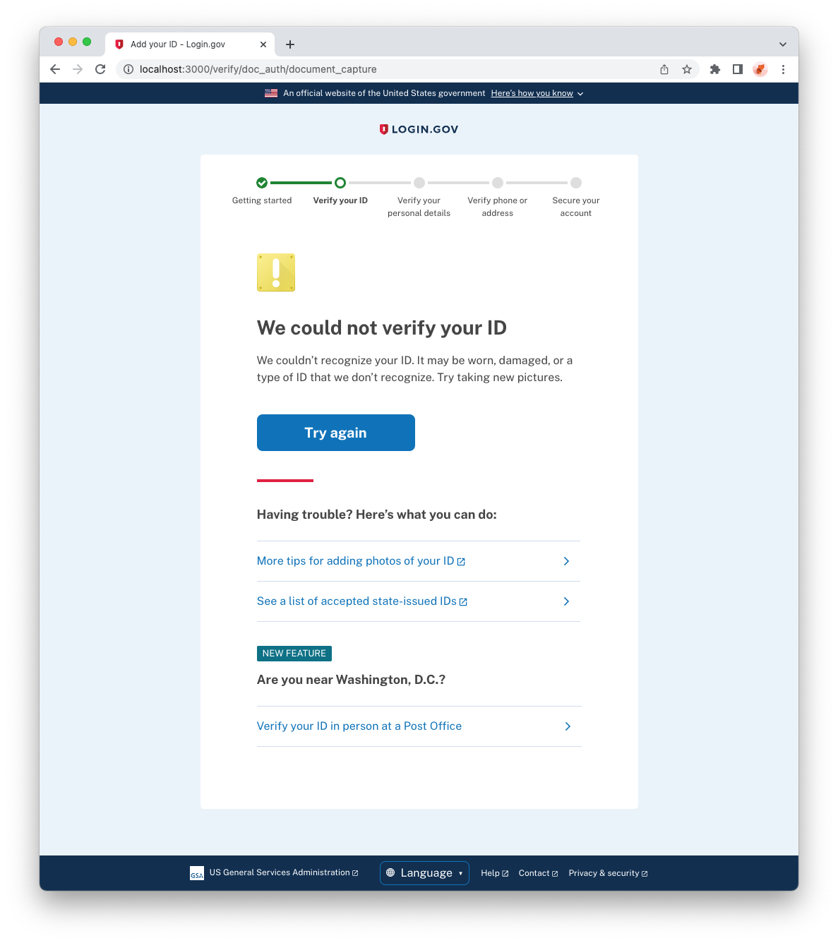 The way it's being treated here is as a "hard failure", meaning that it's a document which was recognized as unacceptable (fraudulent, etc.). This is one of the results which can be returned from our document authentication vendors. It's also distinct from other non-successful results like "unknown" or "attention". The ticket is making it so that we can continue showing the troubleshooting option for certain unsuccessful results (unknown, attention), but not for failures.