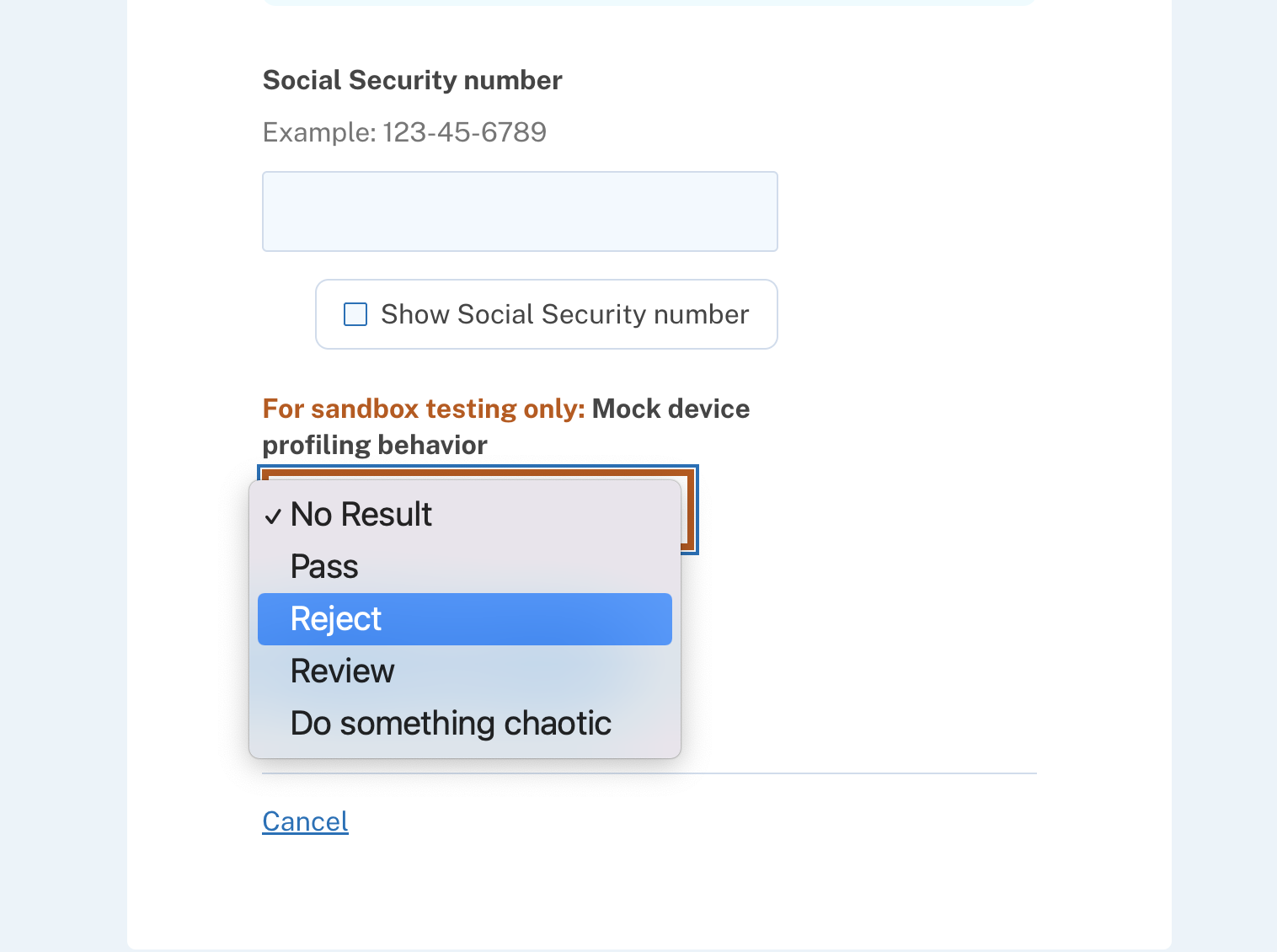 I vote for removing these magic SSNs and having the dropdown by the One True Way to trigger a certain device profiling result.