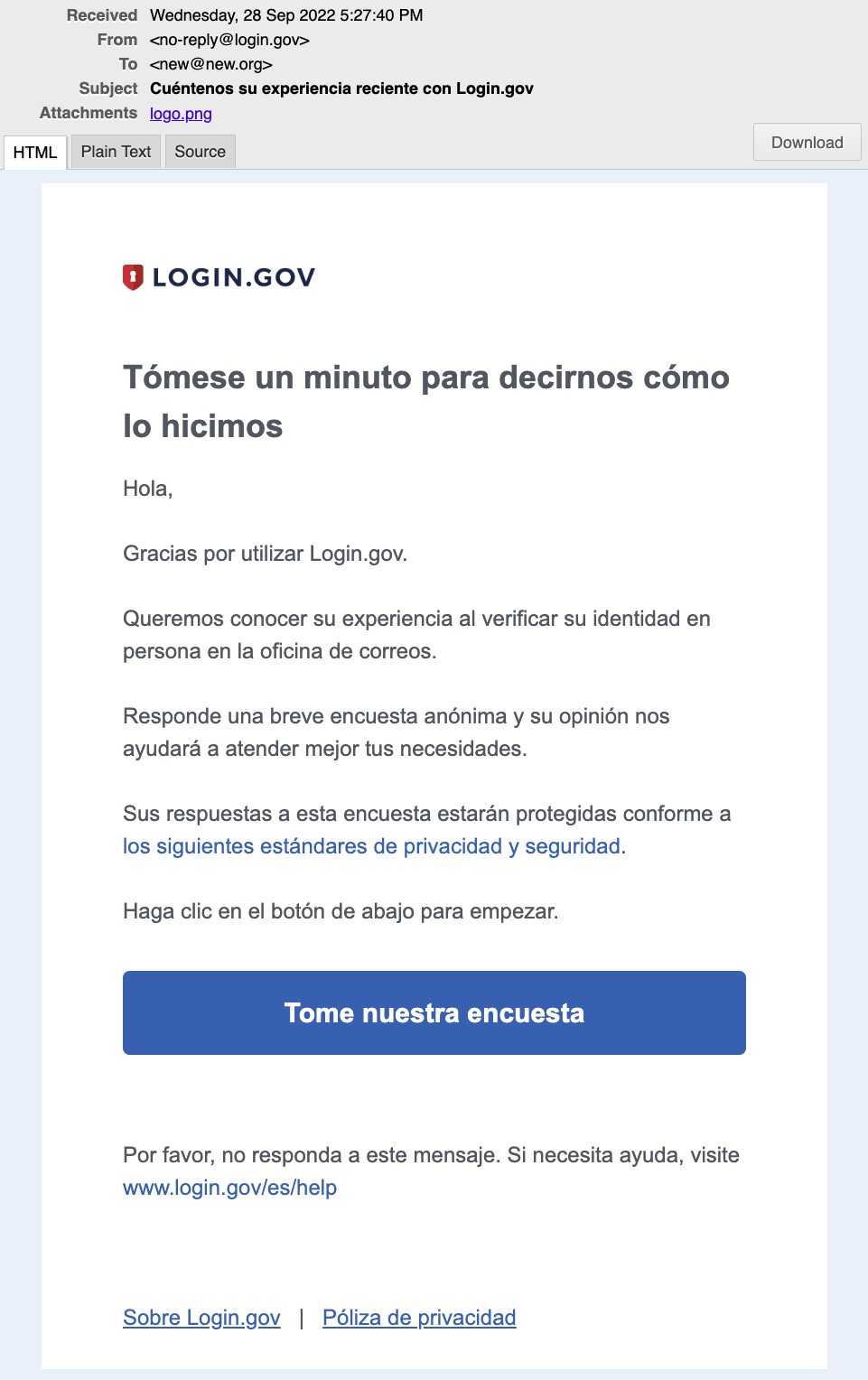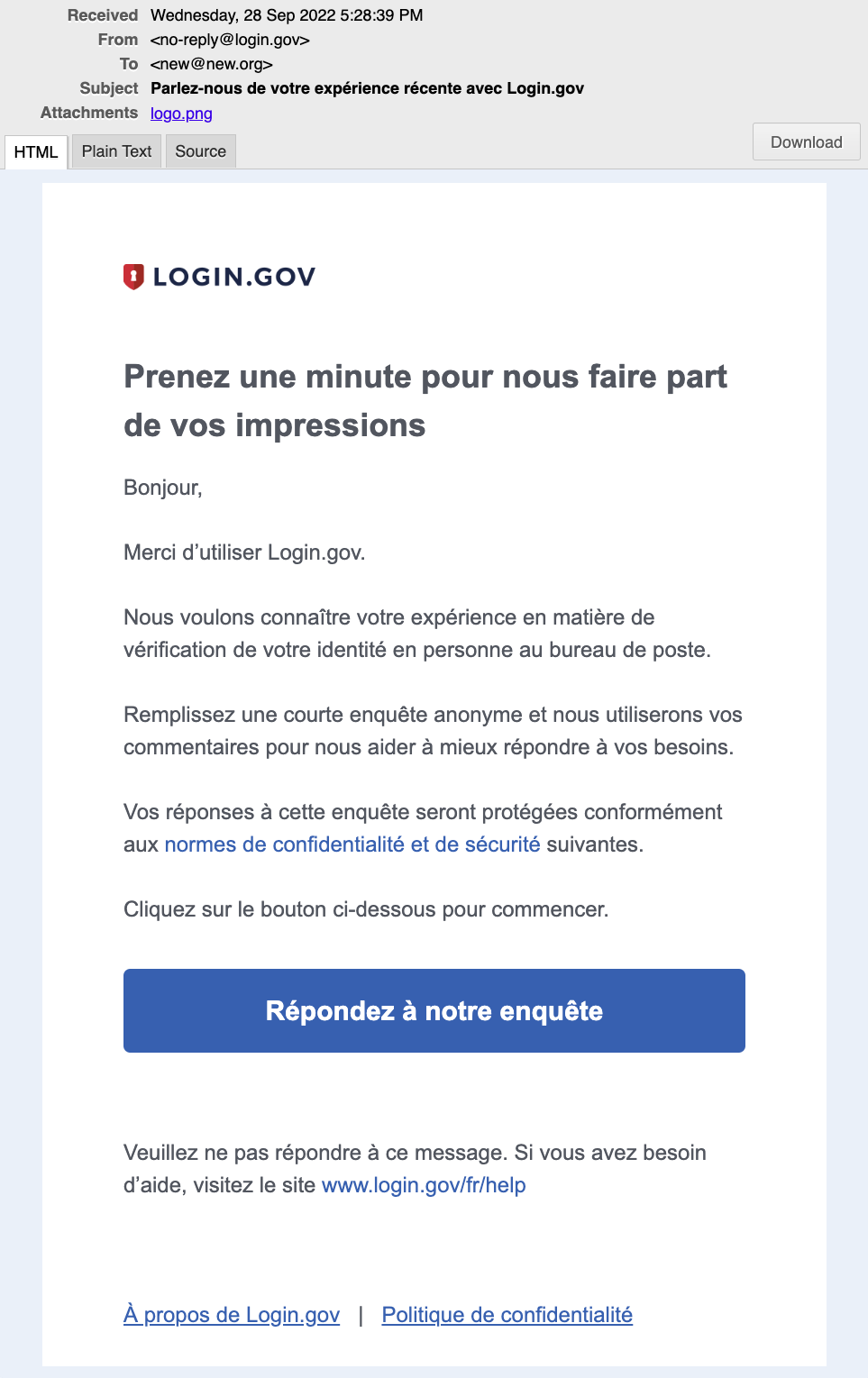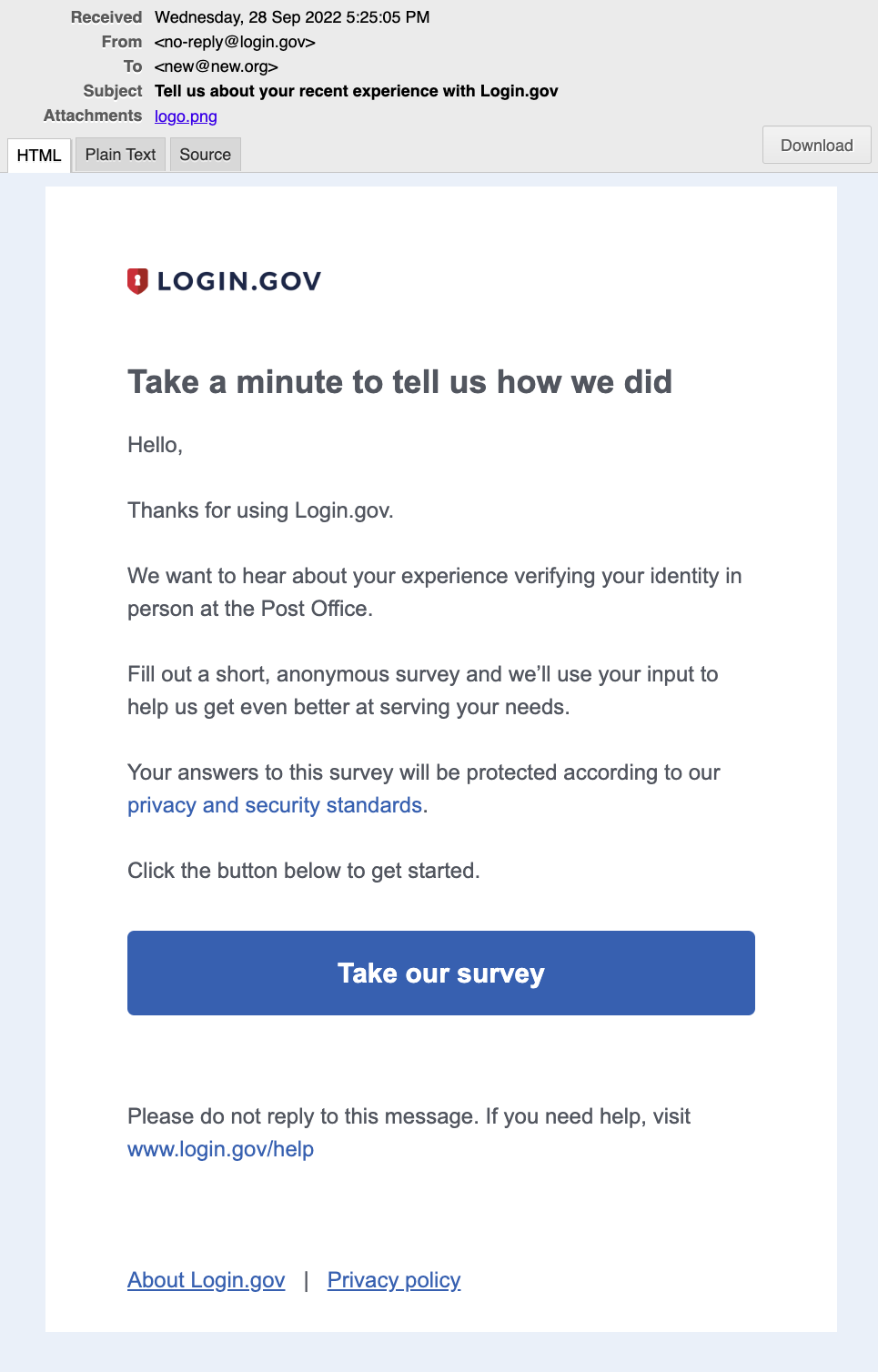 This requires that the user be sharing attributes verified via IAL2 with the partner in order to trigger the survey email (as opposed to IAL1 or IAL3). Note that this current usage excludes the IAL "strict" mode.