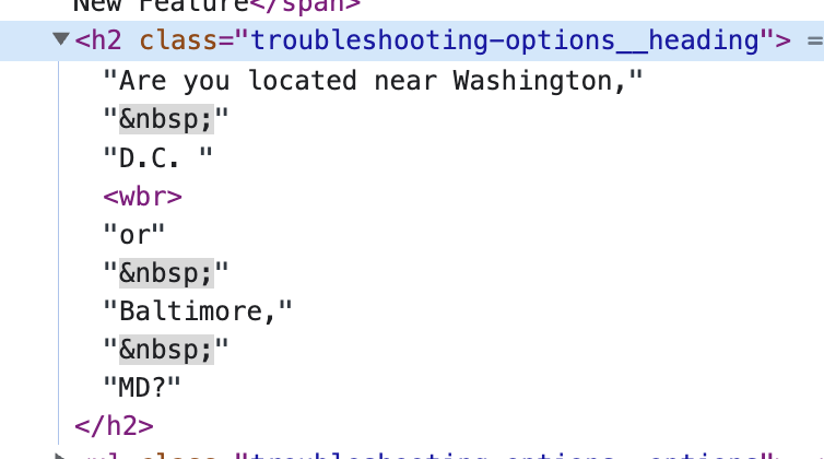 | are_you_near: 'Are you located near Washington, D.C. <wbr/>or Baltimore, MD?' |