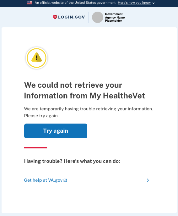 Display and implement a "Try again" button so that an Inherited Proofing user can attempt to retrieve their PII from their Service Provider a second time, if the first attempt fails.