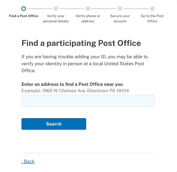 Note: the button only shows loading when the app is looking up an address. It does not continue to show loading when the second trip is made to query for PO locations.