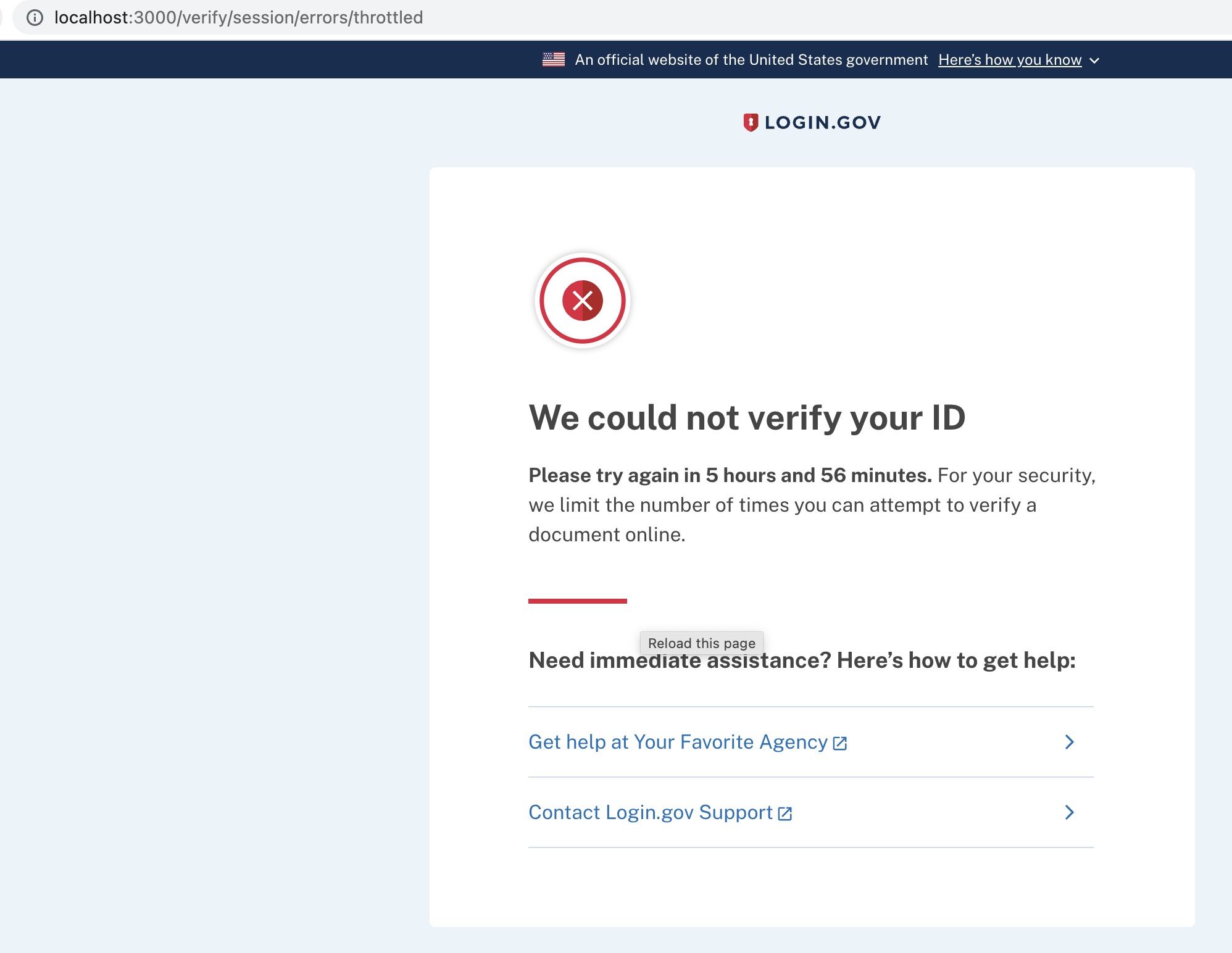 Add link to throttled error page enabled rate limited user to link back to SP using defined failure to proof url changelog: User-Facing Improvements, Identity Verification, Rate limited user can link back to SP using defined failure to proof url