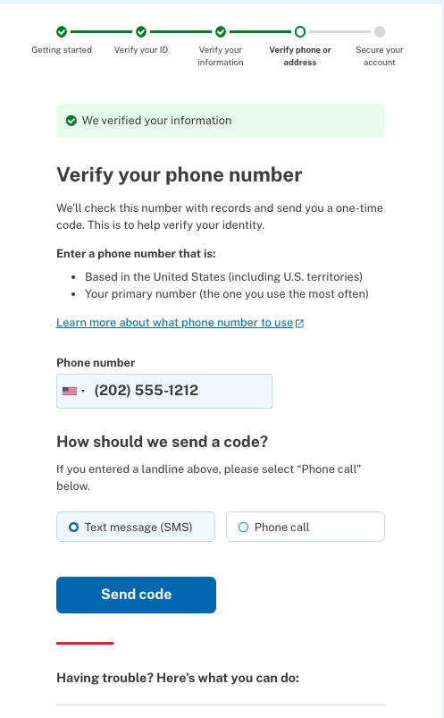 Verify phone page