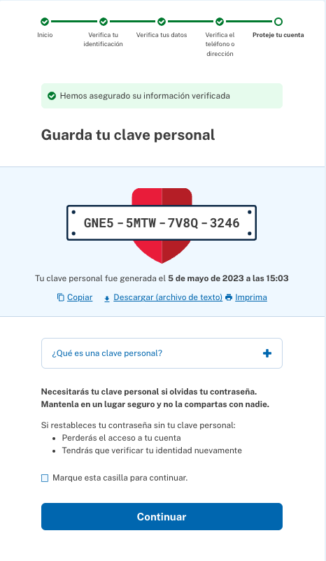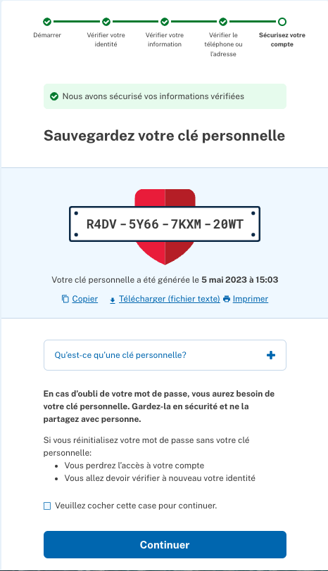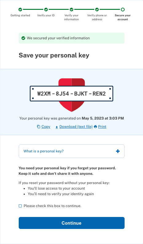 Personal Key page