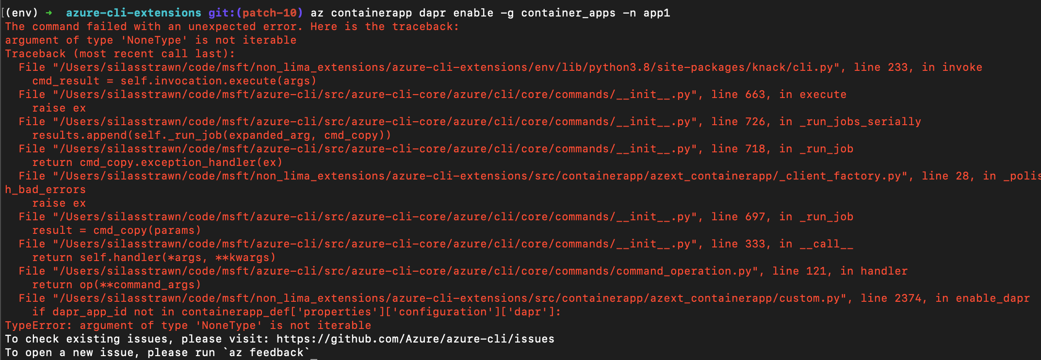 {AzureContainerApp} fixes Azure/azure-cli-extensions#5781 fix for 'NoneType' object does not support item assignment #5791