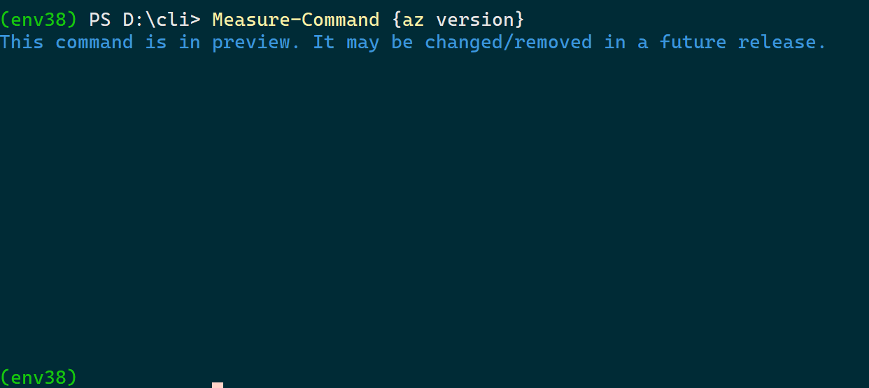 az versionfrom #11680 GA. Otherwise the preview warning breaks the terminal color when callingMeasure-Command {az version}We need to run/demo this line for performance baseline evaluation.