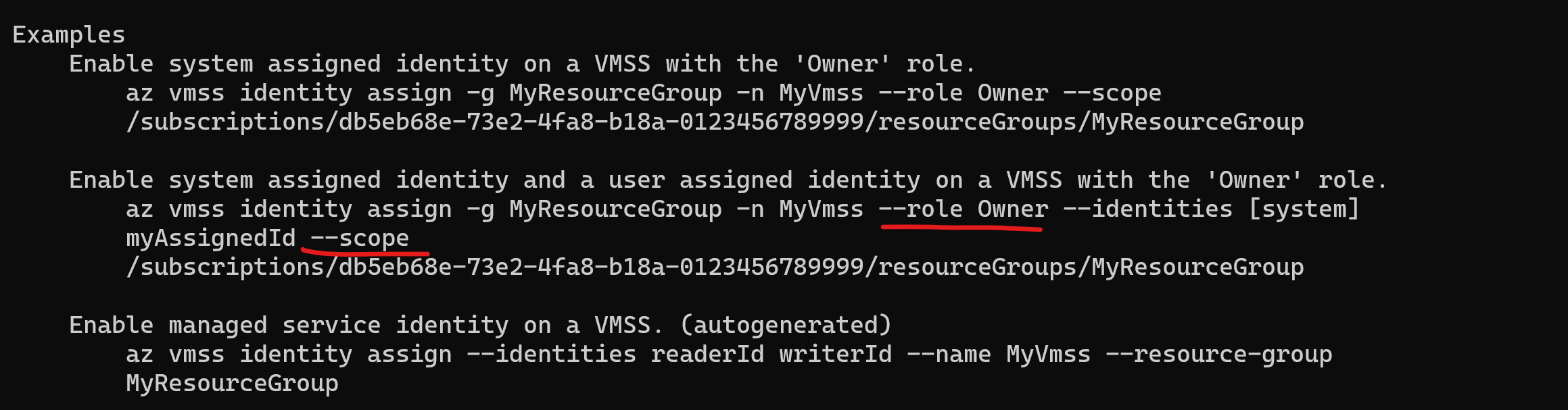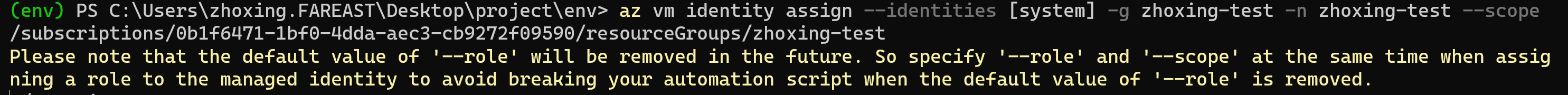 --roleand--scopeshould be passed in at the same time when assigning role to the managed identity to reduce the impact of breaking change.The specific effects are as follows:
