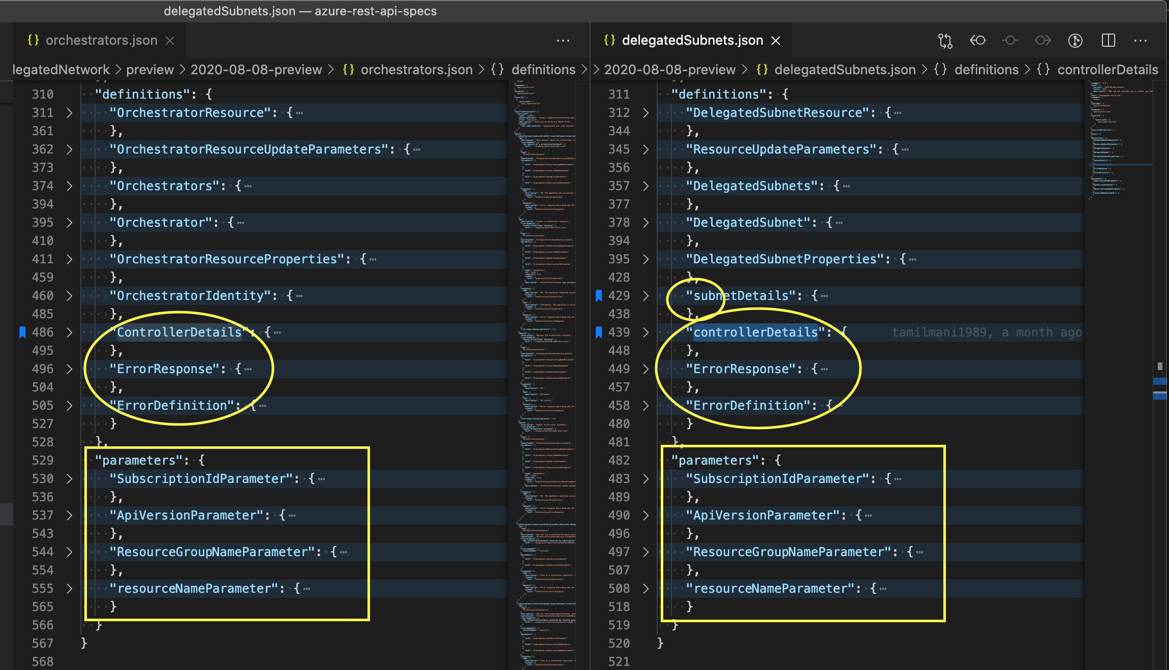The new version is missing a definition that was found in the old version. Was 'controllerDetails' removed or renamed? New: Microsoft.DelegatedNetwork/preview/2020-08-08-preview/delegatedSubnets.json#L311:3 Old: Microsoft.DelegatedNetwork/preview/2020-08-08-preview/delegatedSubnets.json#L311:3 |