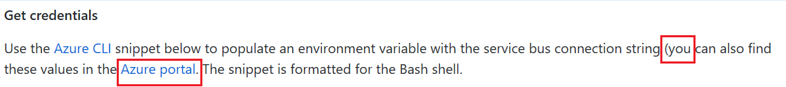 Reason: Maybe we should tell users how to get a service bus connection string in Azure Portal.