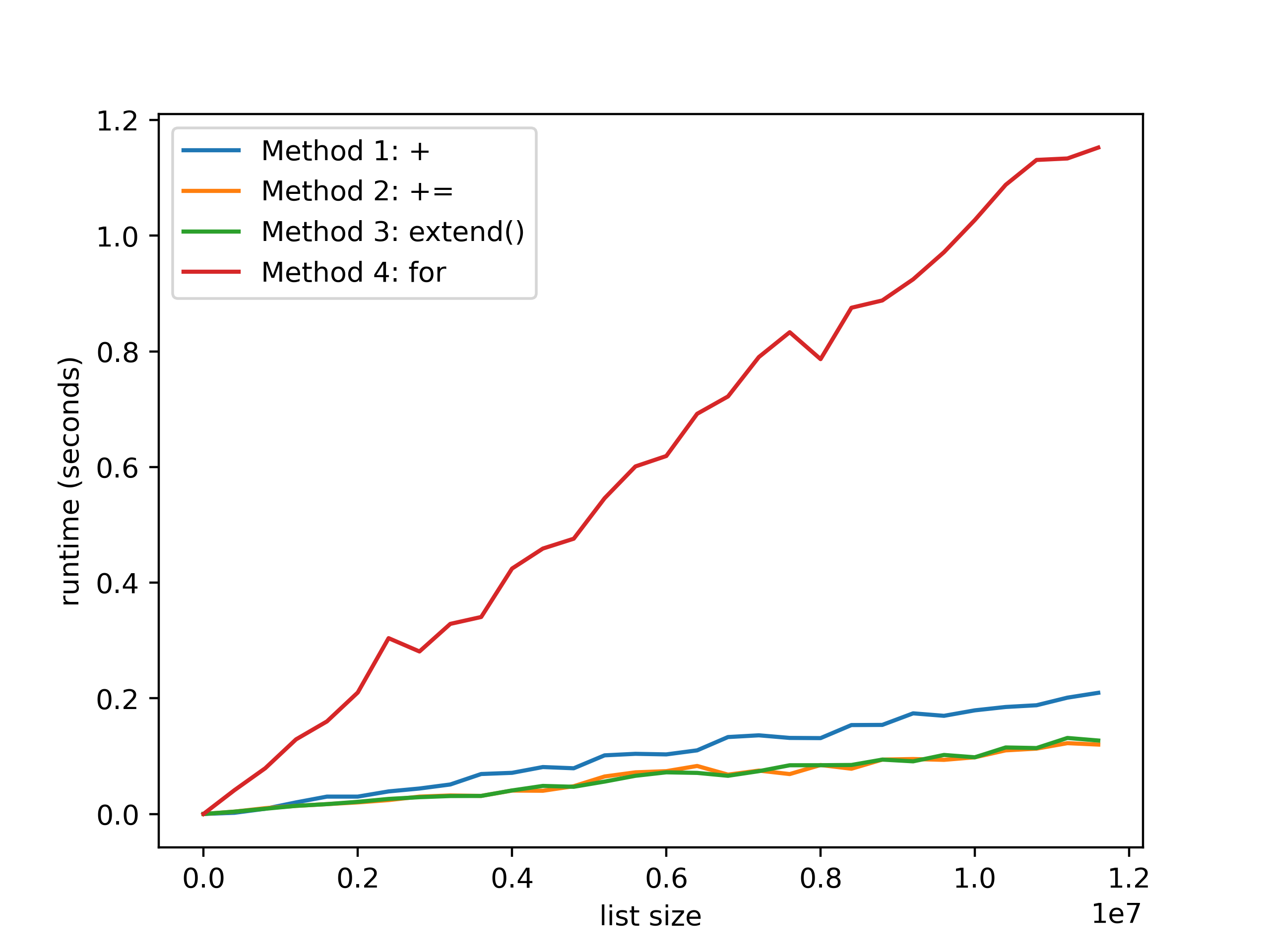 runtimes_3 = [] # Method 3: extend()
