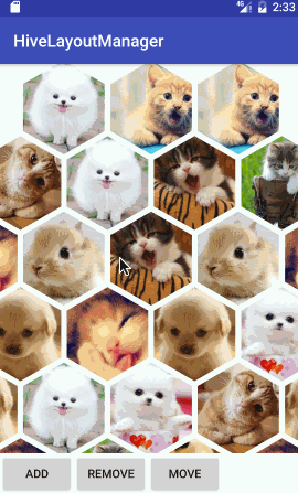recyclerView.setLayoutManager(new HiveLayoutManager(HiveLayoutManager.VERTICAL));