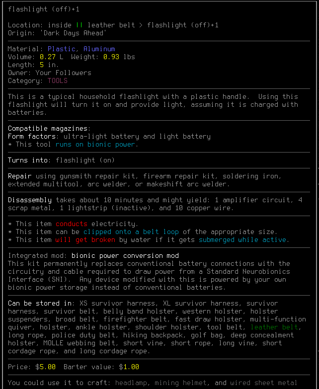 I'd post a screenshot of my flashlight lighting up an evac shelter basement and draining my bionic power pool while waiting for 30m, but you'll probably take my word for it.
