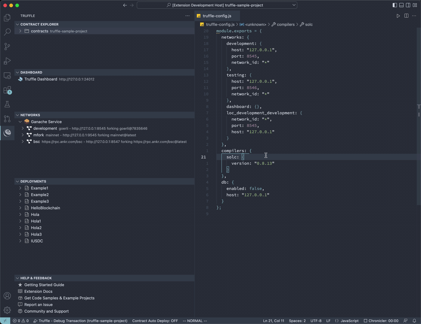 Hey @xhulz, I've been doing some testing. Now I get an error when the debug network is not declared in the Truffle config file. In this instance, the |