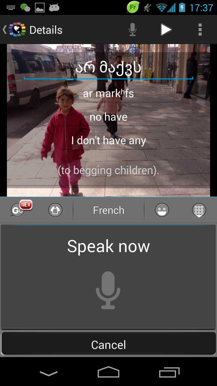 And a separate detail screen (here with speech recognition showing)