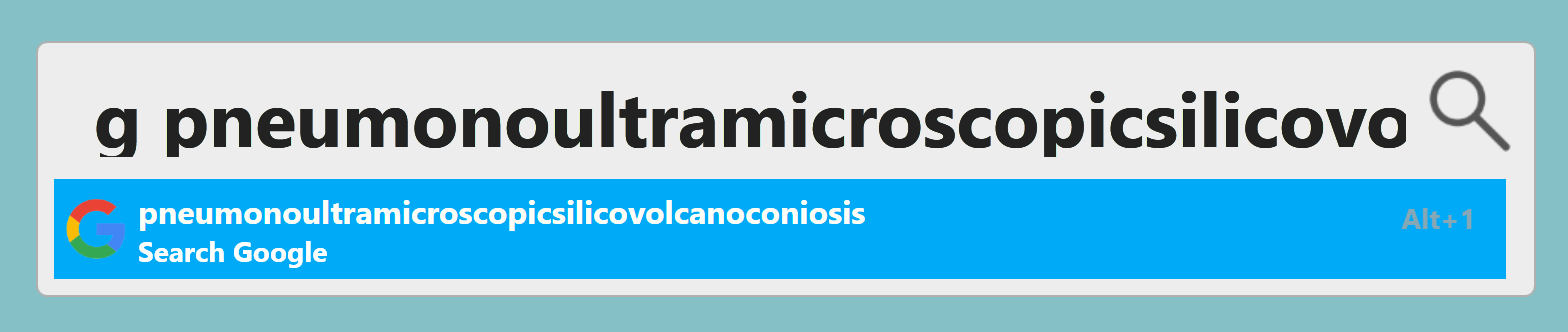 g pneumonoultramicroscopicsilicovolcanoconiosis