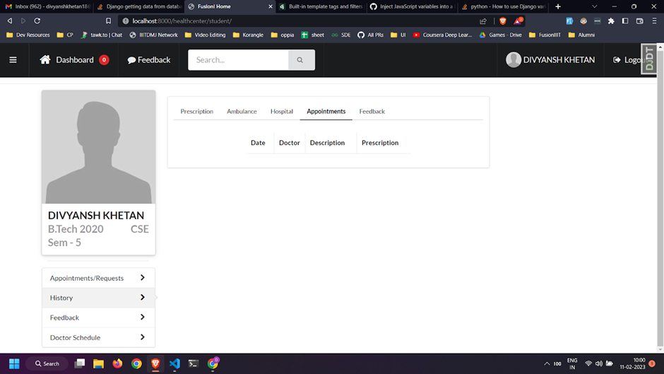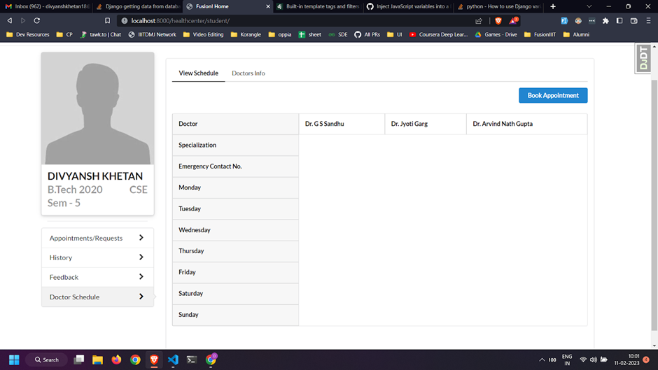 OS-2 : Week - 4 : Prescription in appointment history and emergency contact number in doctor's schedule #1077