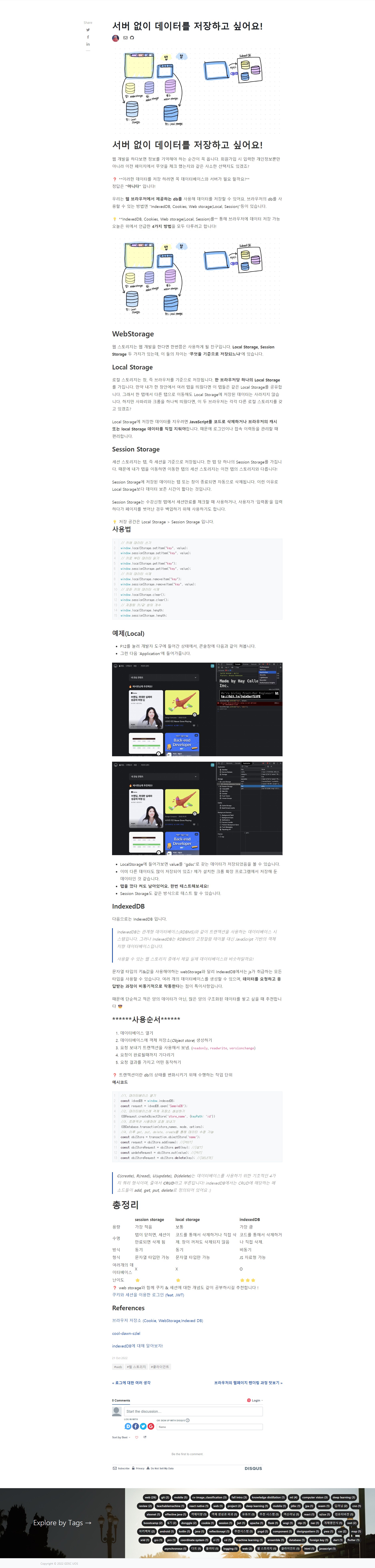 고생하셨습니다! 웹스토리지는 짱짱 간편한 친구라 정말 좋은 것 같아요! 좋은 글 감사합니다 👍