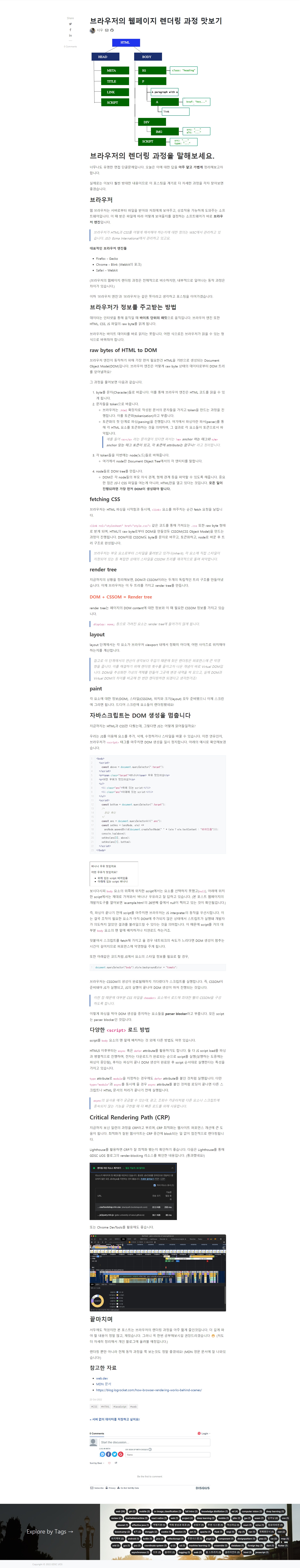 브라우저 렌더링은 복습 안하면 진짜 까먹게 되는데, 덕분에 복습했네여 ㅎㅎㅎ 감사합니당