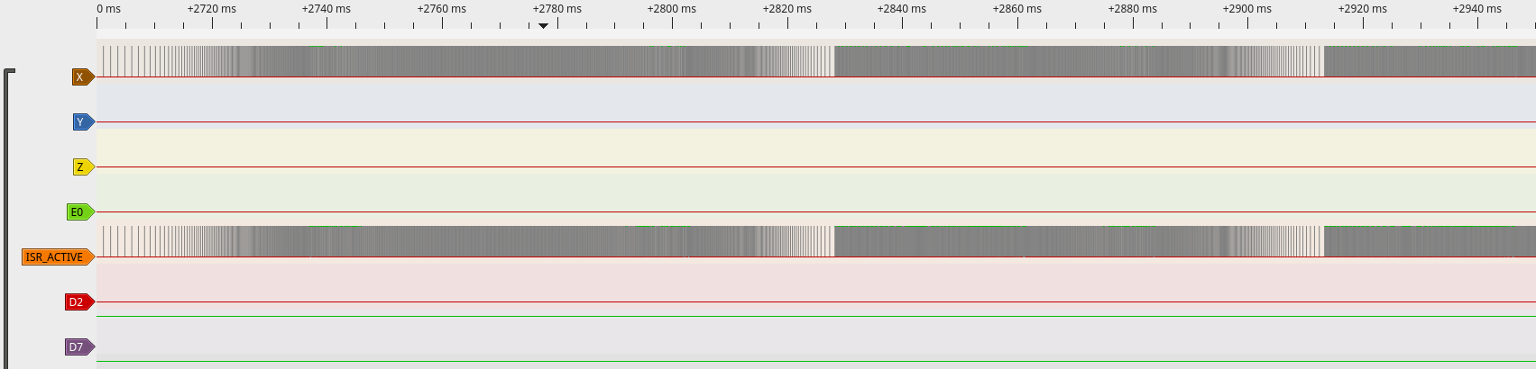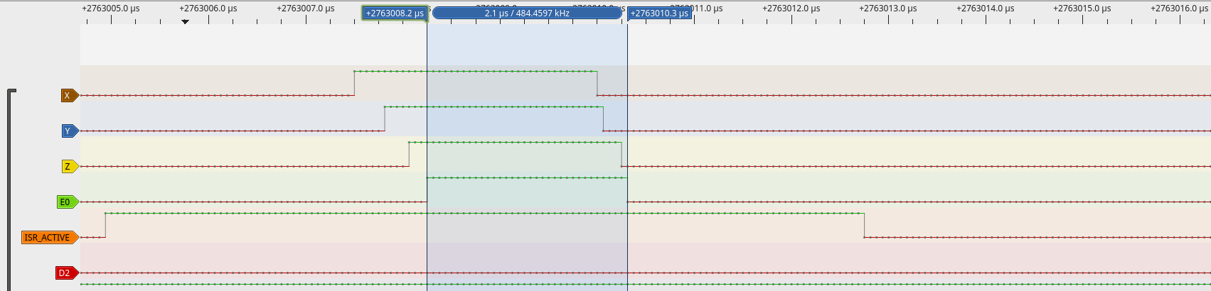 The other thing found by @p3p doing actual measurements on hw is that the width of the Stepper pulses is a little bit short compared with the configured value. This was caused by the fact the program takes some time to toggle the STEP line, but the pulse timing is measured from the point the first STEP line is set, to the first STEP line that is reset.