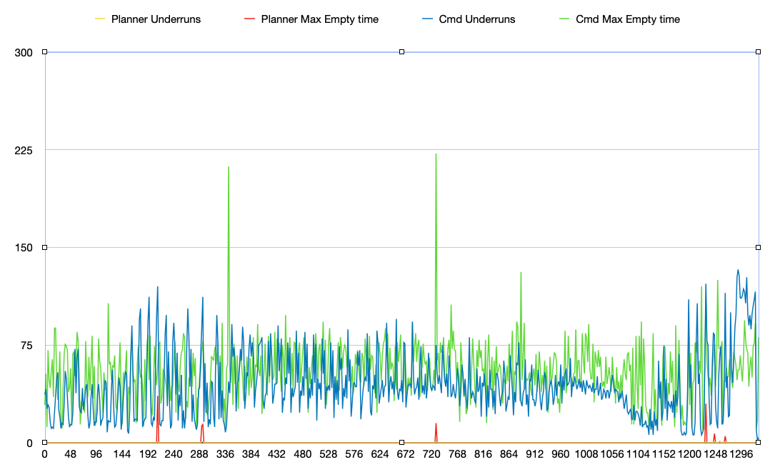 …nner/command buffer space remaining, as well as command buffer underruns, and time the command buffer remained empty since last M576 output