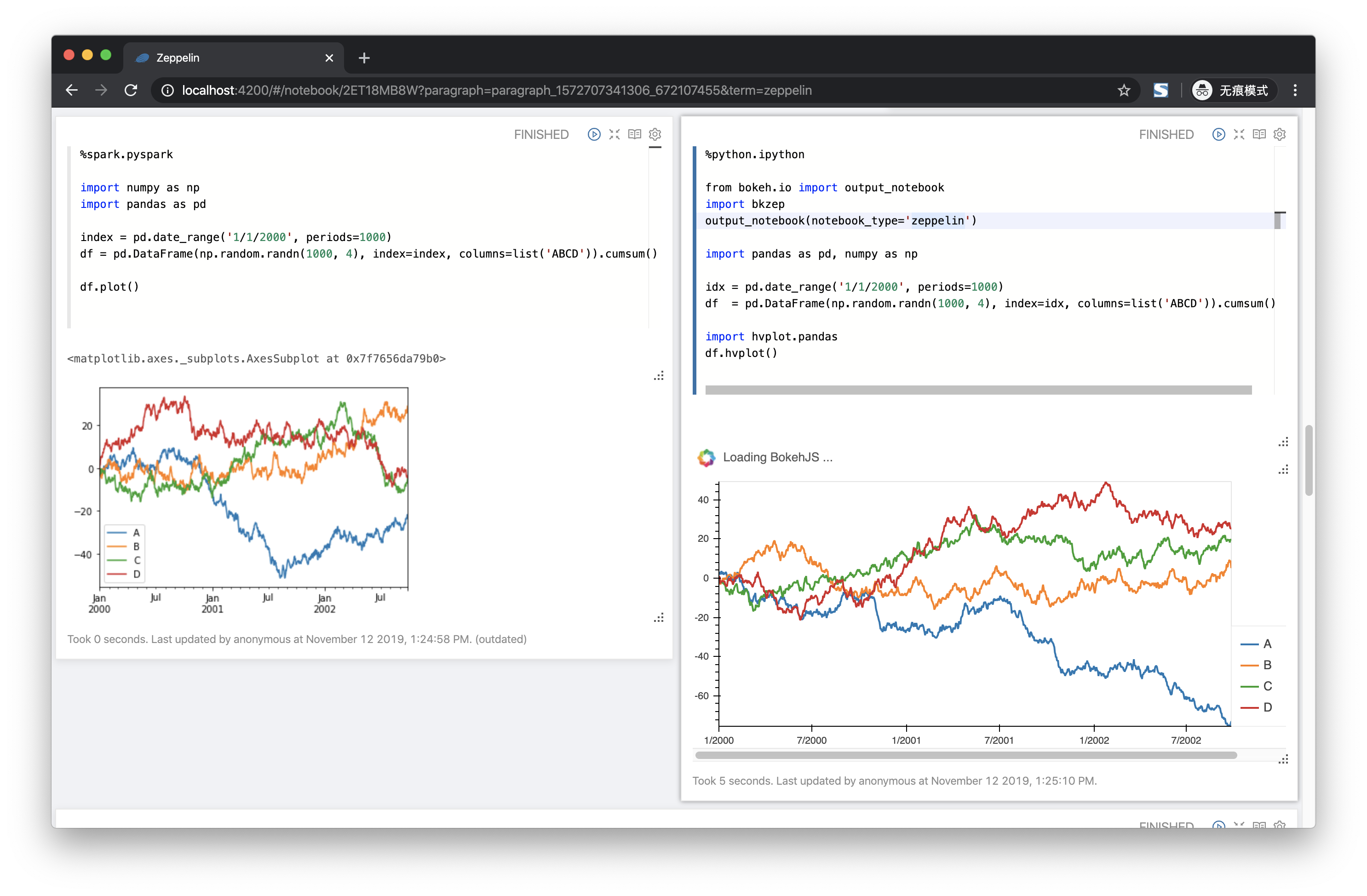 [Run Zeppelin server](https://zeppelin.apache.org/contribution/contributions.html#run-zeppelin-server-in-development-mode) on `http://localhost:8080`.