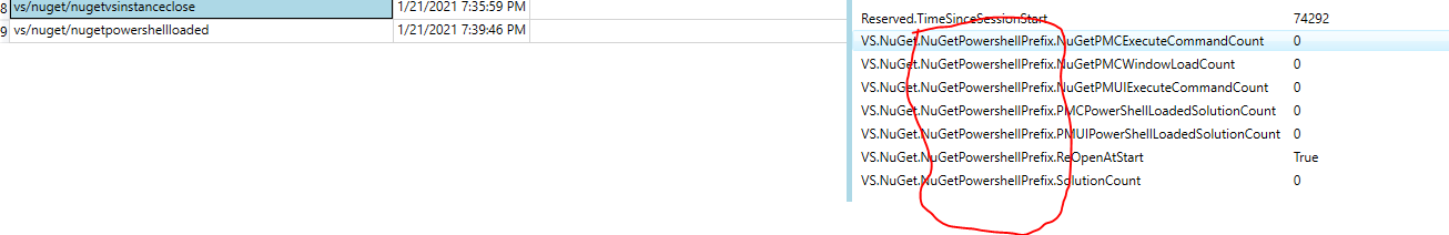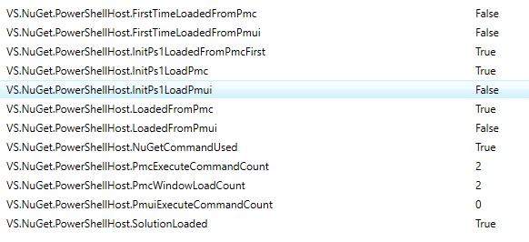 };Consider the point of view from someone querying the data. They see vs.nuget.nugetpowershellprefix.loadedfrompmc == false, but if they don't NuGet very well, they might wonder where did it load from then?