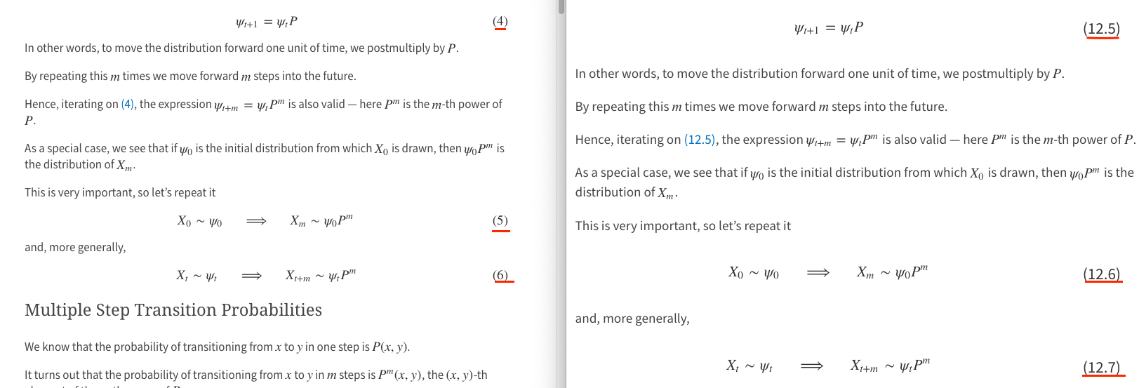 I found that the number of equation reference in MYST does not coincide with that in RST in lecture 12: Finite Markov Chains.