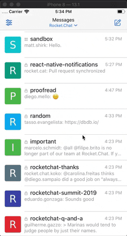 * [FIX] Close SortDropdown on sort select (#1230) * [FIX] Cancel upload and check failed upload (#1232) * [FIX] Slash commands not cleaning is typing and not using state (#1233) * [FIX] Dispatch roomsRequest on app foreground event even if not connected (#1234) * [CHORE] Update react-native-jitsi-meet (#1235) * [FIX] Regex on run slash command (#1223) * Update React Native to 0.61.1 (#1236) * Update React Native to 0.61.1 * Update patch to SSL Pinning * Revert storybook * [CHORE] Update react-native-safe-area-view (#1219) * [FIX] Try/catch JSON.parse XHR response (#1238) * [FIX] Change messagebox icon immediate on change text (#1241) * [FIX] Update last open on message stream received (#1240) * [FIX] Remove animation from RoomsListView.willFocus (#1239) * [FIX] Delete message on thread (#1214) * [REGRESSION] Markdown text (#1242) * [FIX] Jest (#1243) * [FIX] Avatar shown when useRealName is activated (#1162) * Fix avatar when use real name * Wrong indentation * [DOCS] Add SECURITY.md (#1244) * [CHORE] Update react-native-reanimated to 1.3.0 (#1246) * [FIX] Run credentials migration only once (#1245) * [CHORE] Update react-native-jitsi-meet to 2.0.1 (#1249) * [FIX] Messagebox onChangeText issues (#1252) * Stop ongoing debounces on messagebox unmount * Immediately change send icon, but keep debouncing others * Make CustomEmoji stateless function * Fix mentions keyExtractor * [FIX] Room subscription issues (#1255) * [FIX] Reaction press (#1258) * [FIX] Channel avatars not showing after application unloads (#1264) * Revert react-native-safe-area-view (#1265) * [FIX] Remove console on production mode (#1268) * [FIX] Messages preview issues (#1257) * [FIX] Select user from native credentials (#1266) * [FIX] Some issues on preview message (#1271) * [FIX] Audio player track and thumb not rendering on Android (#1273) * [FIX] Record audio message throws exception when FileSystem.getInfoAsync is called (#1272) * [FIX] China shouldn't use CallKit (#1274) * [FIX] Watermelon batches (#1277) * Bump version to 1.20.1 (#1285) * [CHORE] Remove memoize-one (#1284) * [FIX] End Jitsi call on unmount (#1291) * [FIX] Allow self-signed certificates (#1310) * [FIX] Set User-Agent (#1318) * Set User-Agent Fetch & Websocket & XHR * Set User-Agent * Custom User Agent on fetch/websocket * Fix names * Use DeviceInfo * fix server with subpath (#1322) * [FIX] Server with https:\\ instead of https:// (#1320) * [FIX] Server dropdown not closing after changing stack (#1299) * [FIX] Invalid server version (#1319) * [IMPROVEMENT] Respect "Hide counter" preference (#1306) * [FIX] Pass isFocused as a function to Messagebox (#1309) * [CHORE] Remove icons folder (#1290) * [CHORE] Refactor RoomItem touchable (#1331) * [FIX] Unnecessary rerender on RoomItem when status is undefined (#1336) * [UPDATE DEPS] react-navigation and react-navigation-stack (#1337) * [FIX] Avatars not loading on share extension when Accounts_AvatarBlockUnauthenticatedAccess is enabled (#1339) * Bump version to 1.20.2 (#1340) * [FIX] Remove some unnecessary re-renders on Messagebox (#1341) * [REGRESSION] Use LayoutAnimation instead of Transition API (#1338) * [FIX] Remove setState from notifications view causing watermelon object to be updated outside an action (#1342) * [IMPROVEMENT] Save last message as message when subscription is updated (#1344) * [UPDATE DEPS] Update RN to 0.61.3 (#1345) * [DOCS] Update Readme (#1346) * [CHORE] Remove react-native-scrollable-tab-view fork (#1352) * [FIX] URL preview (#1360) * [REGRESSION] Decrease list view memory size (#1361) * [FIX] Paste (#1350) * [CHORE] Update gems (#1365) * Bump version to 1.20.3 (#1366) * [FIX] Use Ruby 2.4 on TestFlight upload (#1368) * [FIX] Parse Urls (#1371) * [FIX] Parse image URL only if it's not empty (#1372) * [FIX] Load messages issues (#1373) * Bump version to 1.21.0 (#1376) * [FIX] Crowd login (#1381) * [FIX] Clicking user avatar in thread previews crashes app (#1363) * [IMPROVEMENT] Error messages on connect (#1379) * [FIX] ProfileView input navigation error when custom fields aren't set (#1383) * [FIX] Batch server deletion on logout (#1382) * Bump app to 1.22.0 (#1387) * [FIX] Server Version (#1392) * Update patch and minor deps (#1386) * [FIX] Crash when open thread (#1395) * Bump version to 1.23.0 (#1394) * [I18N] Update ru.js (#1384) * [FIX] CAS building wrong URL (#1362) * [FIX] Delete messages (#1399) * [FIX] In-app notification showing wrong content on channels (#1400) * Bump version to 1.24.0 (#1404) * [FIX] Prevent server with whitespace (#1402) * [IMPROVEMENT] Keyboard and content type on login (#1403) * [FIX] Messages stop loading (#1410) * [NEW] Tablet support (#1300) * [IMPROVEMENT] Authentication via deep linking (#1418) * [IMPROVEMENT] Markdown performance when identifying emoji only content (#1422) * [FIX] BackHandler remove random failing on development (#1423) * Bump version to 1.25.0 (#1424) * [CHORE] Update CI Xcode Image (#1430) * [FIX] Rooms grouping not working properly (#1435) * [FIX] Take a video (#1437) * [NEW] Themes (#1298) * [FIX] Share extension doesn't reconnect to previous selected server on Android (#1429) * [FIX] Init local settings on notification tap (#1438) * Bump version to 1.26.0 (#1450) * [FIX] Emoji parser not working on Hermes (#1445) * [NEW] Enable Hermes (#1446) * [FIX] Automatic theme repeating (#1457) * [CHORE] Sync Experimental and Official app versions (#1458) * [DOCS] Update readme (#1459) * [FIX] Messages being sent but showing as temp status (#1469) * [FIX] Missing messages after reconnect (#1470) * [FIX] Few fixes on themes (#1477) * [I18N] Missing German translations (#1465) * Missing German translation * adding a missing space behind colon * added a missing space after colon * and another attempt to finally fix this – got confused by all the branches * some smaller fixes for the translation * better wording * fixed another typo * [FIX] Crash while displaying the attached image with http on file name (#1401) * [IMPROVEMENT] Tap