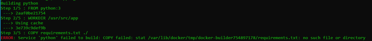 I saw this posted on the prior fork but not seeing the same here. I'm having an issue where when running docker-compose up -d I get an error attributed to the installation/update of Python. I've traced it back to no "requirements.txt" file being found in the dynamically created tmp path. Any ideas on how to fix or what might be within the requirements.txt file so that I can create it?
