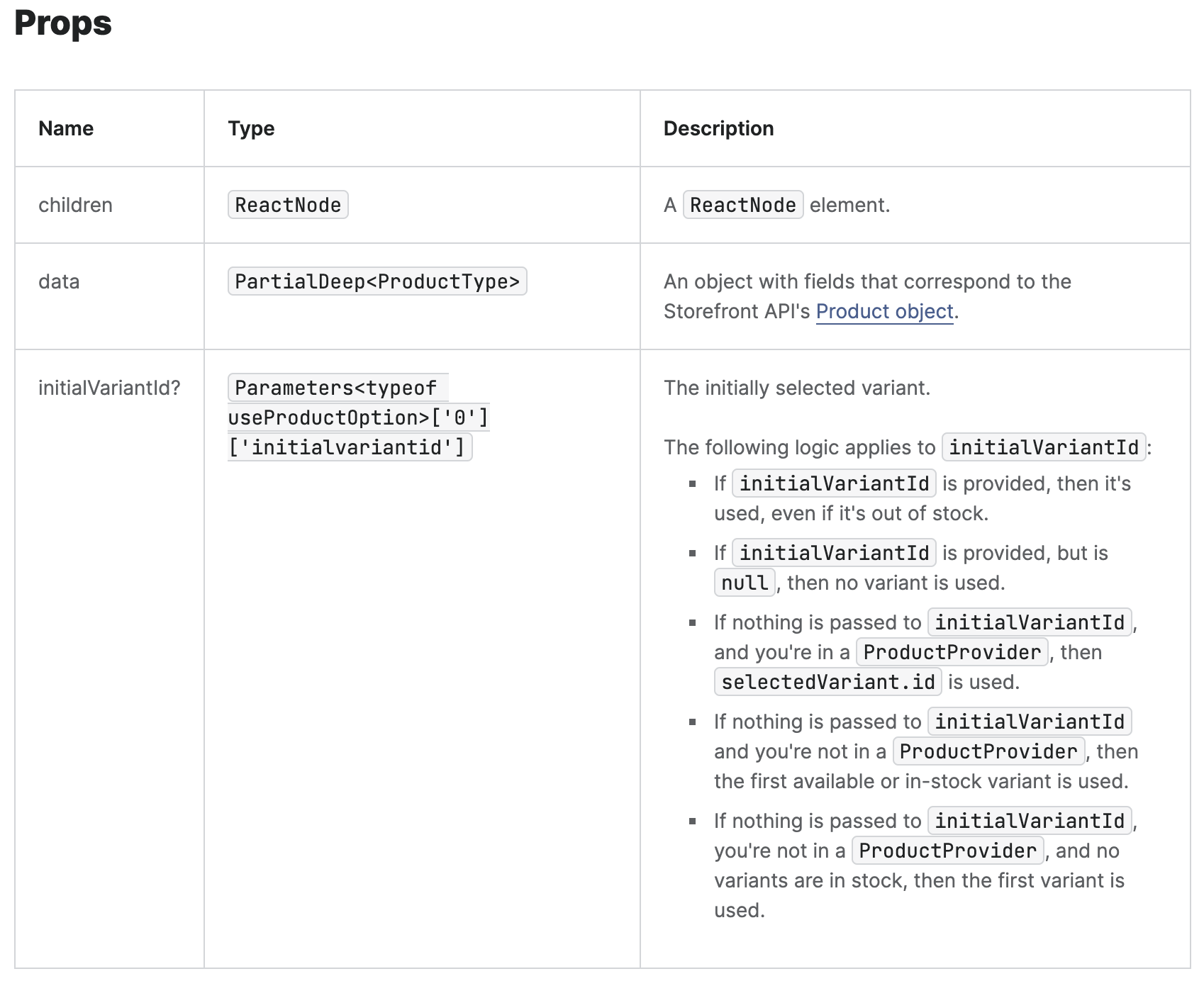 [Hydrogen docs]: Clarify behavior of initialVariantId prop