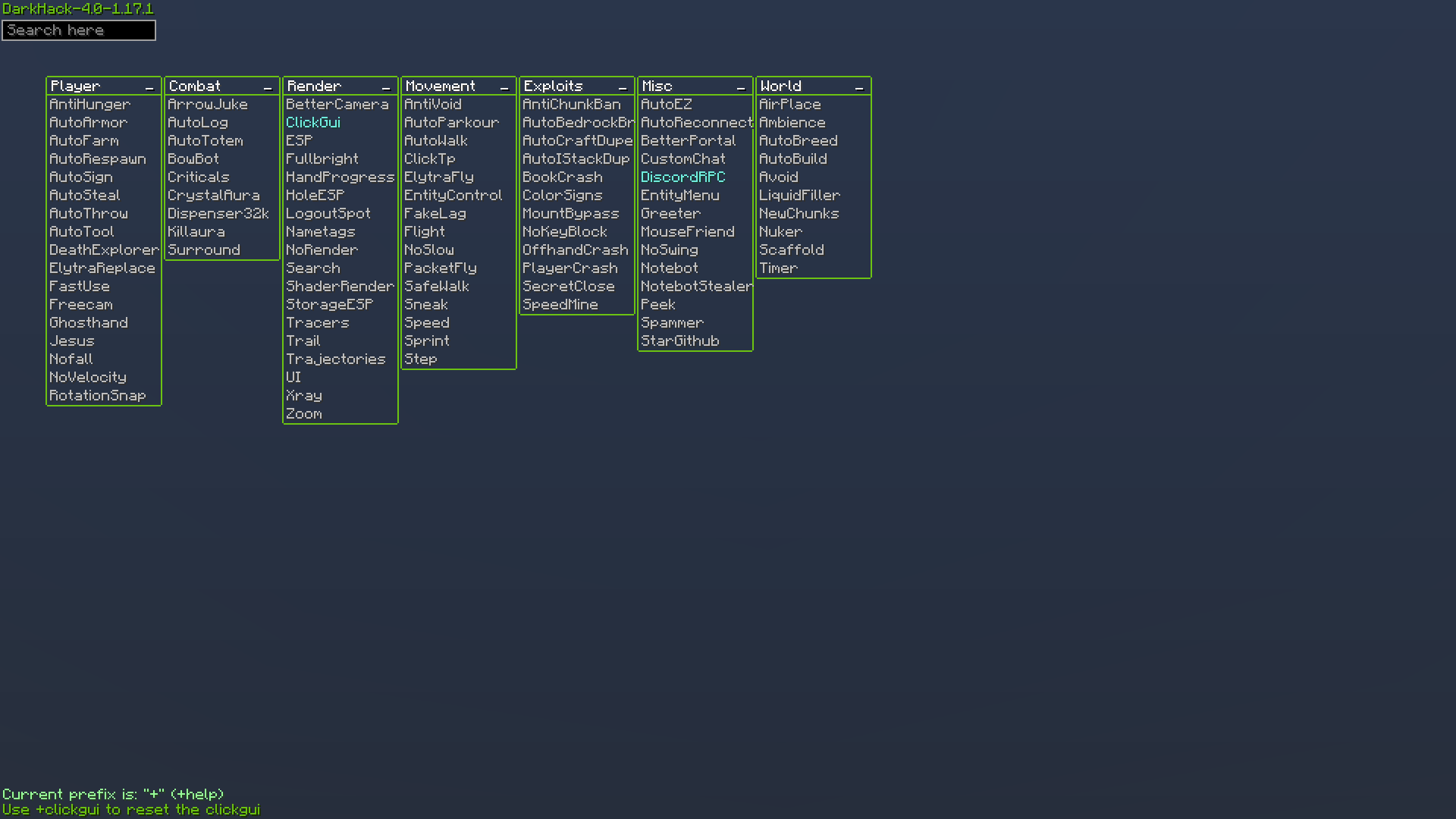I made this to make Bleach compatible with meteor and even gone so far as changing prefix to + and ClickGui bind to right control