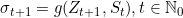 Base on the previous sigma function. We could easily generate the plain time-series formula. This formula involved mapping function g, noise Z, and state S. We assume that the historical process will evolves through a conditional model in the time series problem. The mapping function g relates noise and state to the next time step, in such form