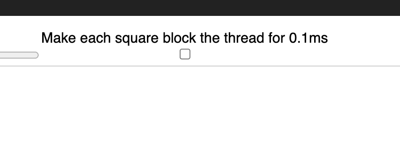 When the checkbox is ticked, each square is forced to spend 0.1ms blocking the thread. This simulates "death by a thousand cuts" where you have a large update that needs to run a bunch of user-written code. There's just no way you can "optimize it away". What's interesting is how the system handles a bunch of computational work distributed between a tree of components.
