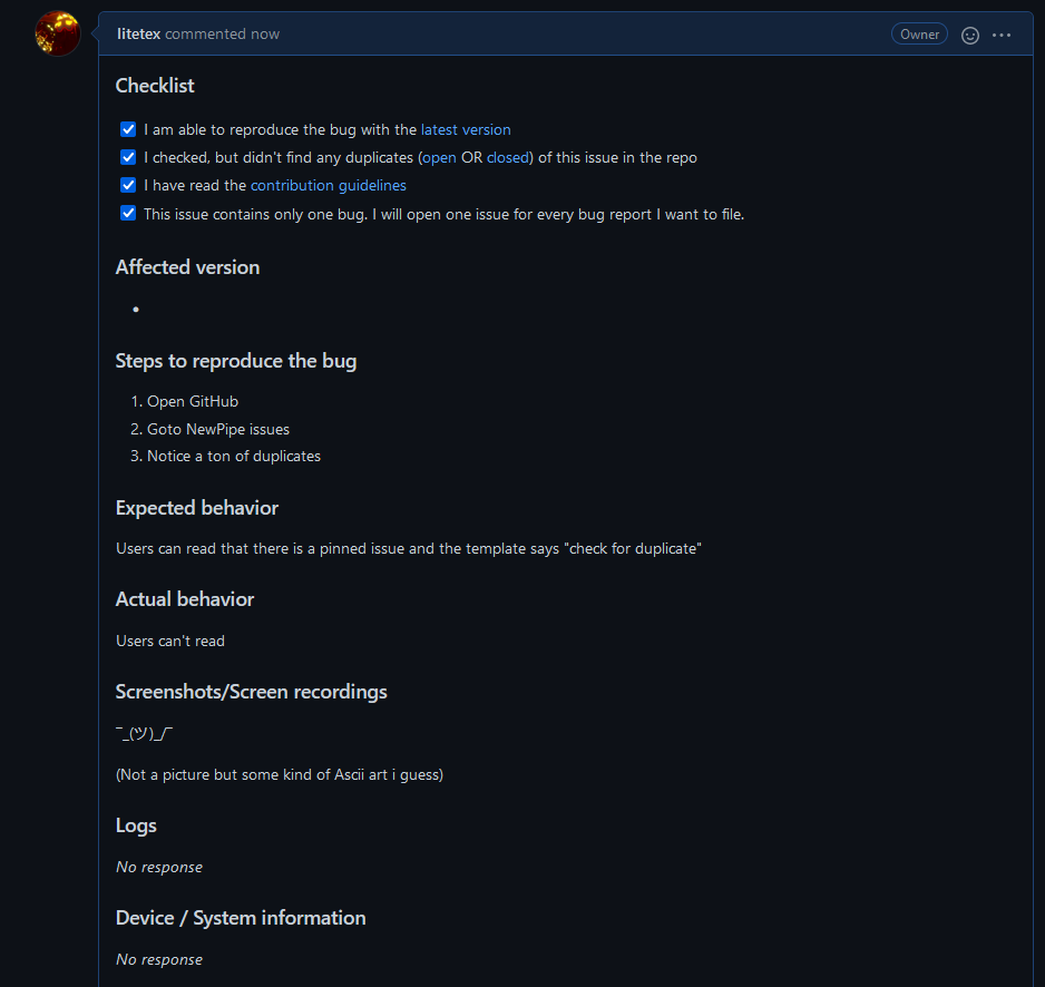 Backstory: We got ~30 issue duplicates in one day despite having a pinned issue (→ #7734)