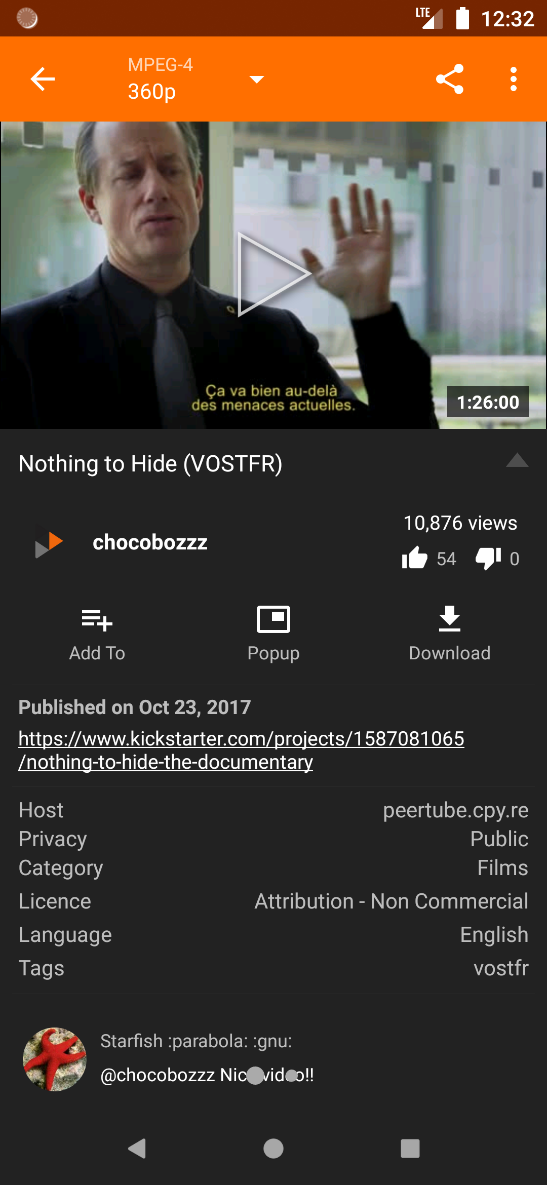 thumbnail: quality before: https://peertube.cpy.re/static/thumbnails/d2a5ec78-5f85-4090-8ec5-dc1102e022ea.jpg quality after: https://peertube.cpy.re/static/previews/d2a5ec78-5f85-4090-8ec5-dc1102e022ea.jpg description: we were getting about the first 260 characters, we now get full description (with fallback to first 260 chars if the get request for full description fails) test: updated tests to match description, also changed some test: it was assertEquals(extracted, expected), but the proper way to do it is assertEquals(expected, extracted) metadata: got host, privacy (public, private, unlisted), licence, language, tags