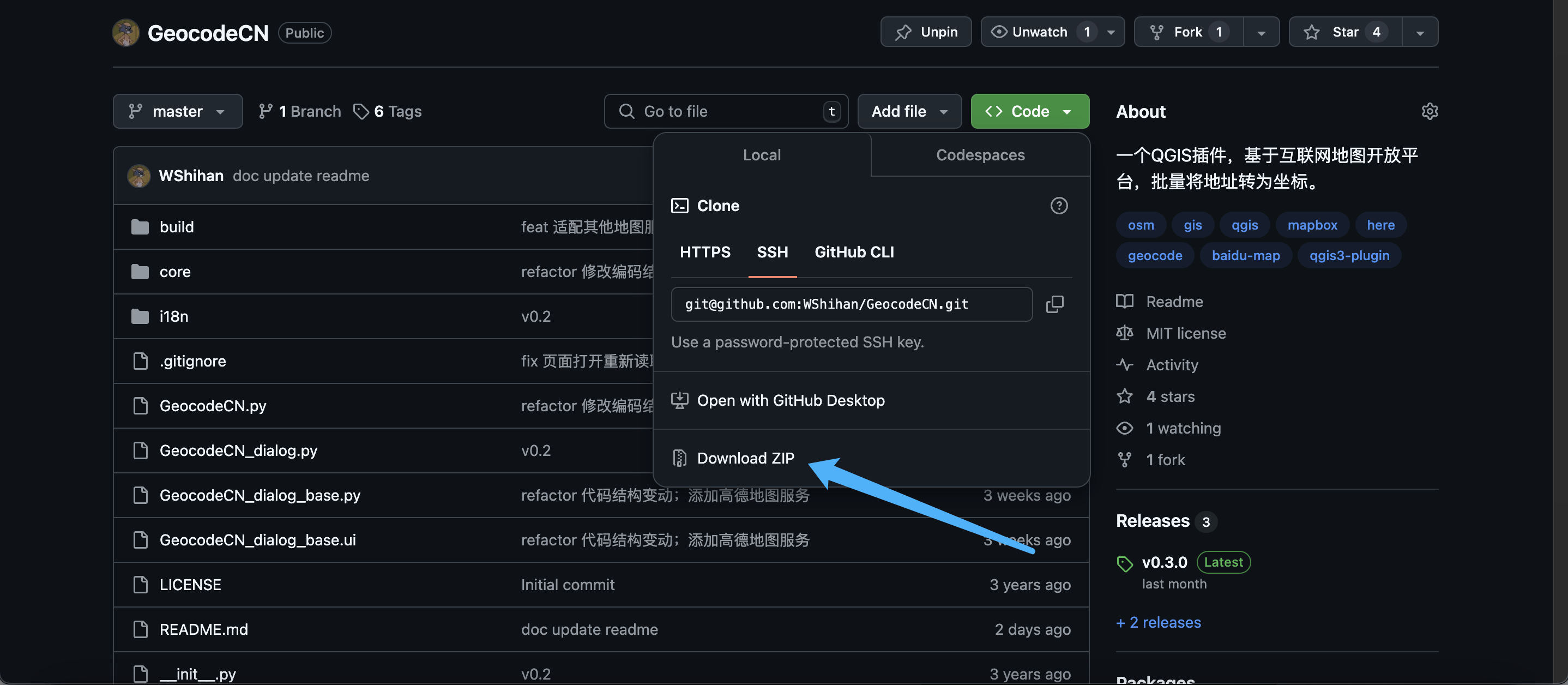 该插件已发布在QGIS官方插件库,可直接在仓库里查找安装,或者通过下载源码包安装。