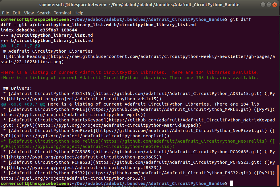 circuitpython_lib_list.mdwhen new libraries are added to the bundle. The list was a request from PT to ease blog posts for the available libraries (at minimum; could be used elsewhere).I tested this up to commit; did not test pushing and releasing. Push seems straightforward enough, and the way I understand the release code, updates to the list won't make it into the release notes.