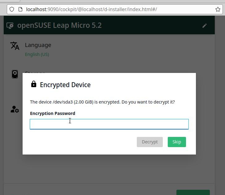 Once the installer successfully unlocks the partition, we need to close it manually to be able to rerun the test: