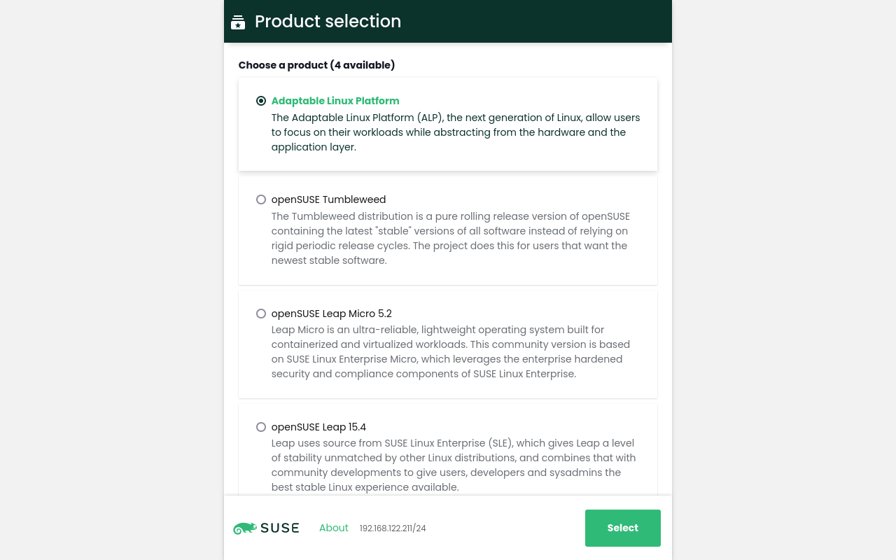 At this point, D-Installer only offers Tumbleweed, Leap Micro and openSUSE Leap. However, ALP is missing.