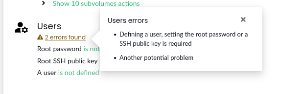 When there are multiple errors, they are shown in a pop-over. Of course, in the example below, the second is a testing error. Bear in mind that, by now, this situation should not happen.