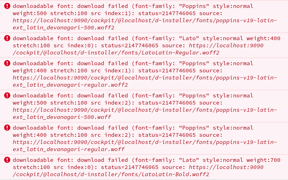 Custom fonts are not being included in the final bundle, as expected. Most probably, current webpack configuration is not able to understand the Sass @use at rule as an import and thus is not applying the custom configuration for the fonts.scss file