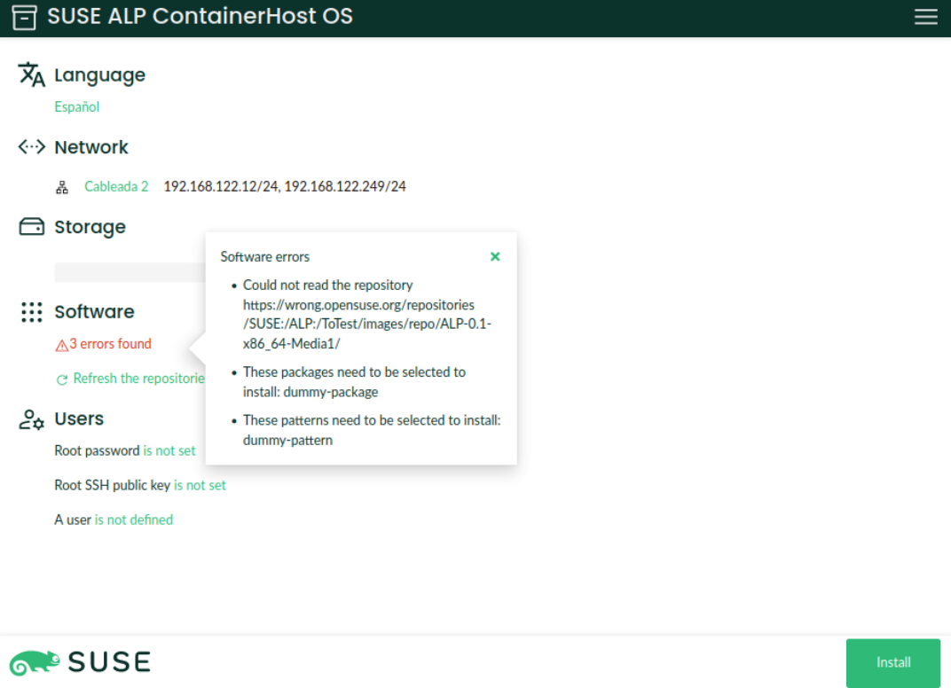 Recently, we added a Software section that informs the user about missing packages and the installation size. However, it has a few problems: